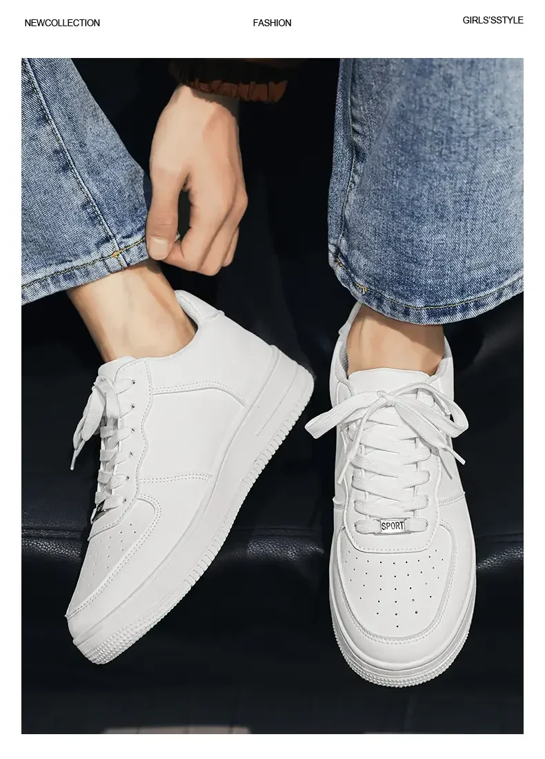 Men’s Sneakers Casual Sports Shoes for Men Lightweight PU Leather Breathable Shoe Mens Flat White Tenis Shoes Zapatillas Hombre