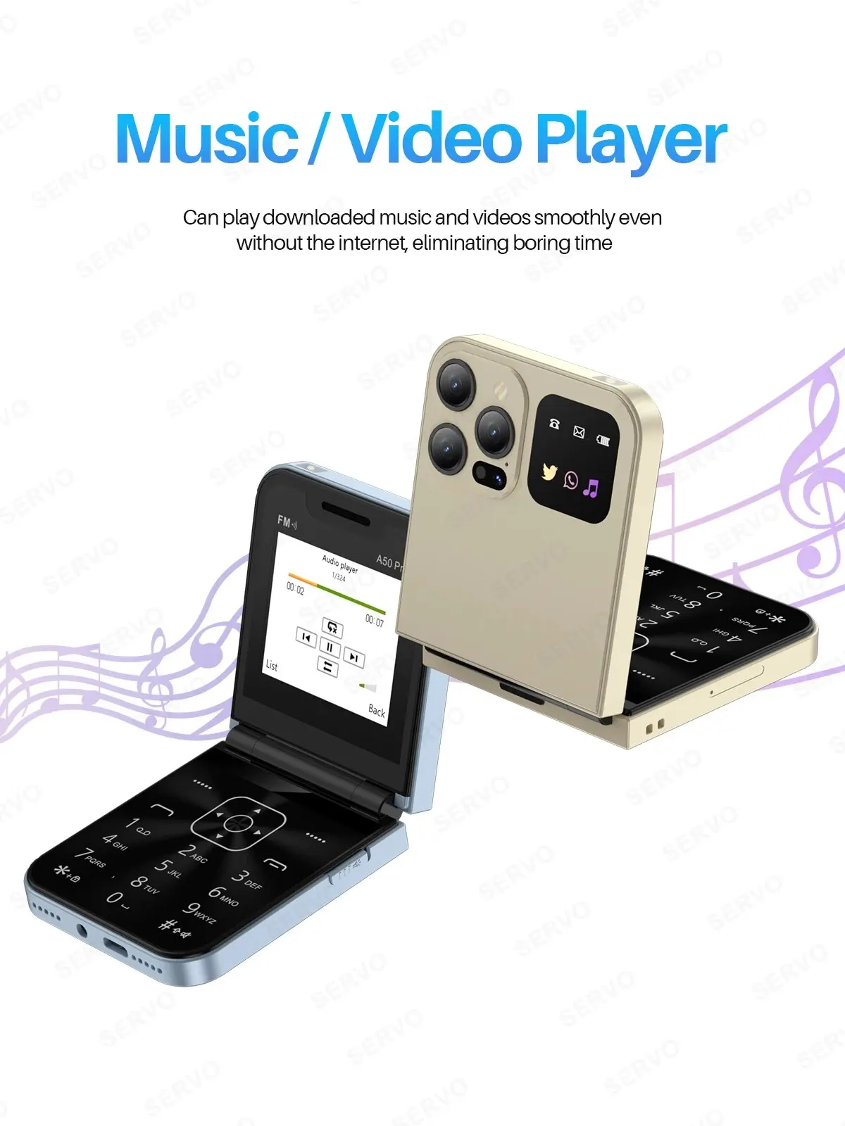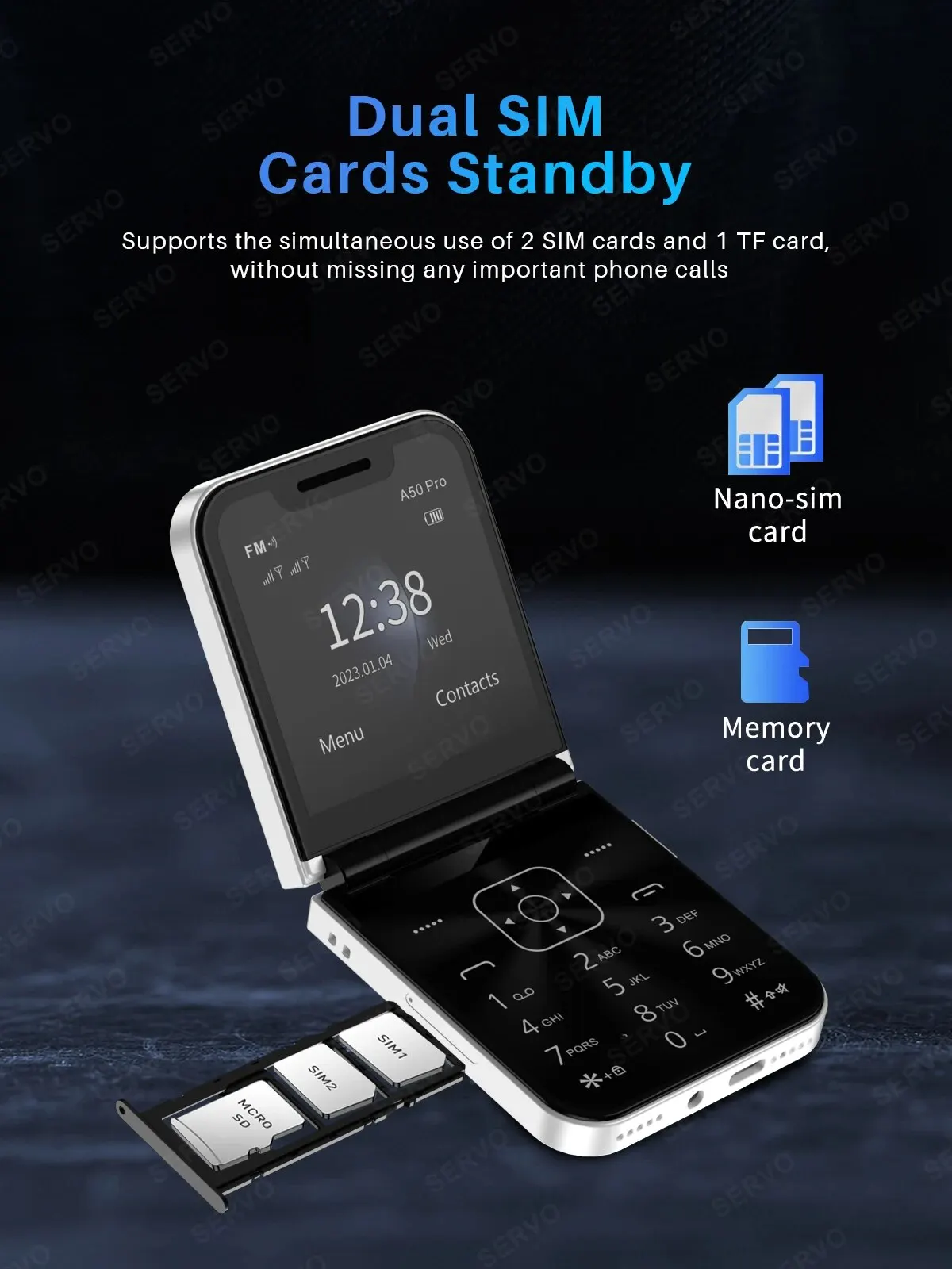 SERVO A50 PRO Foldable Mobile Phone Auto FM Radio Call Record Speed Dial Magic Voice Dual SIM GSM Unlocked Cellphone 2.4