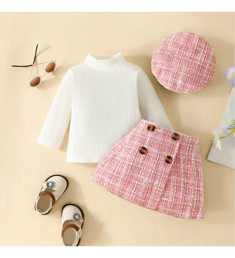 Uncategorized 3Pcs Outfits Fashion Baby Girl Clothes Turtleneck Tee Long Sleeve Tops Plaid Skirts with Hat Infant Toddler Girl 6Months-3Years affiliatedstore - March 5, 2024 0 Price: [price_with_discount]