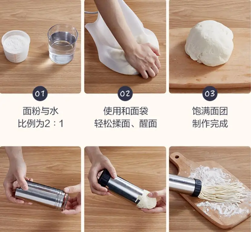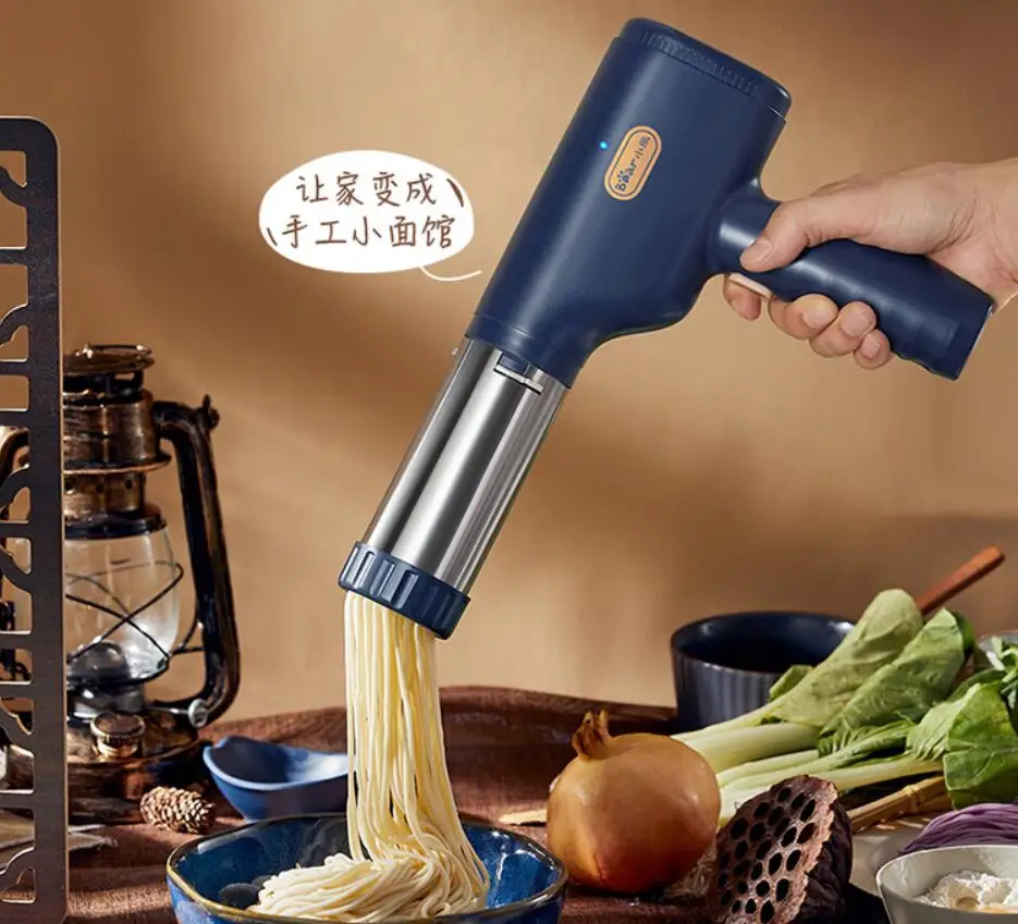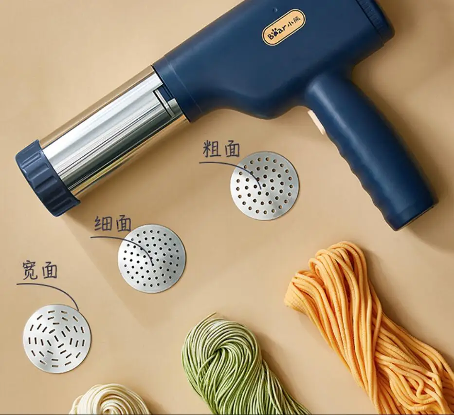 Home Uncategorized Bear household Noodle Maker Home Noodle Press Handheld Noodle Gun Electric Automatic Stainless Steel Noodle Press DC5V2A diy