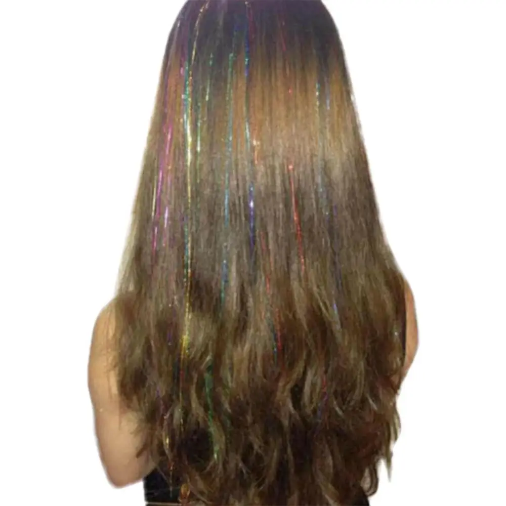 Heat Resistant Glitter Long Straight Wig Shiny Seamless Hair Extension Hairpiece