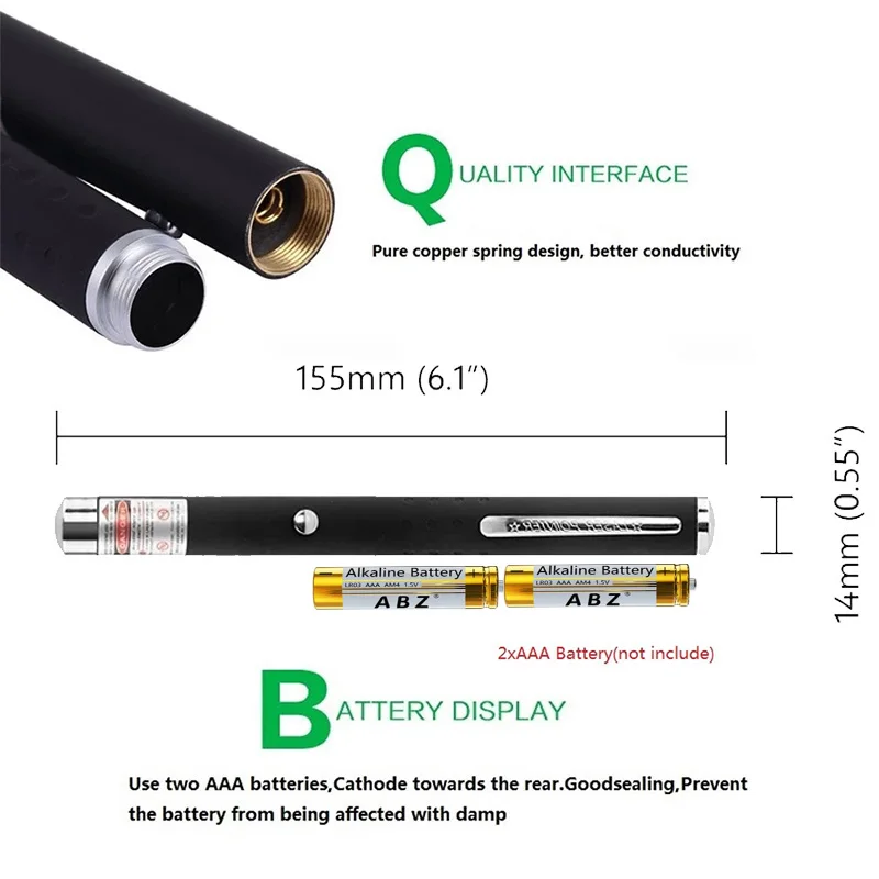 5. If you discover that the brightness of the laser beam is significantly decreased, please word that to cost the battery or exchange the battery.