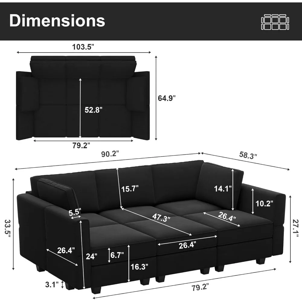 • Easy meeting: The modular sectional couch must be assembled. No instruments wanted and simple to observe directions to assemble. Overall couch measurement: 90.2″(W)*58.3″(L)*33.5″(H). Bed measurement: 79.2″(W)*52.8″(L). The modular couch is available in 7 packages that will arrive individually inside totally different days.