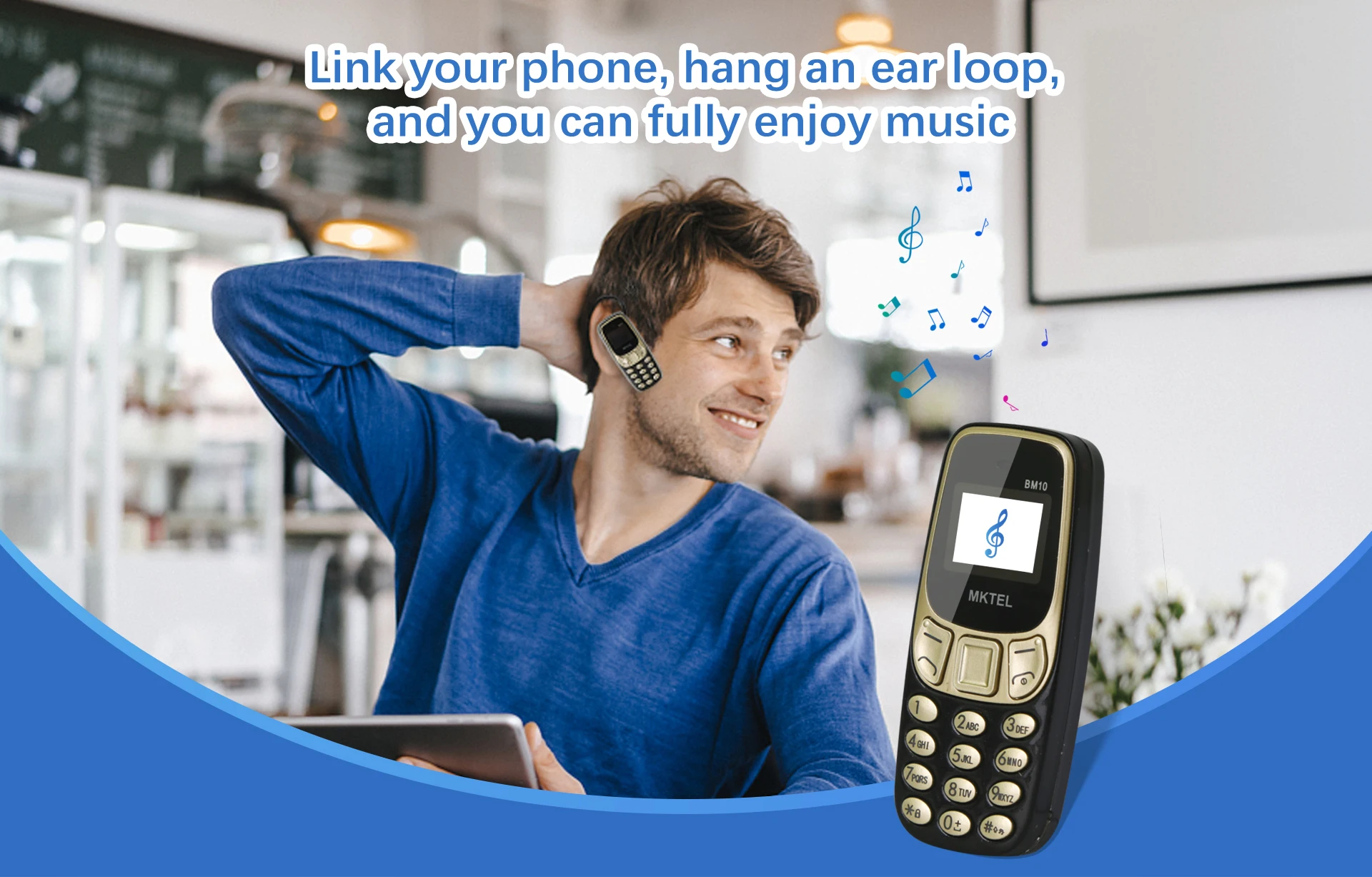 MKTEL BM10 Mini Feature Phone With Earhook Dual SIM Dual Standby 380mAh Battery MP3/MP4/FM Radio/Bluetooth/GPRS