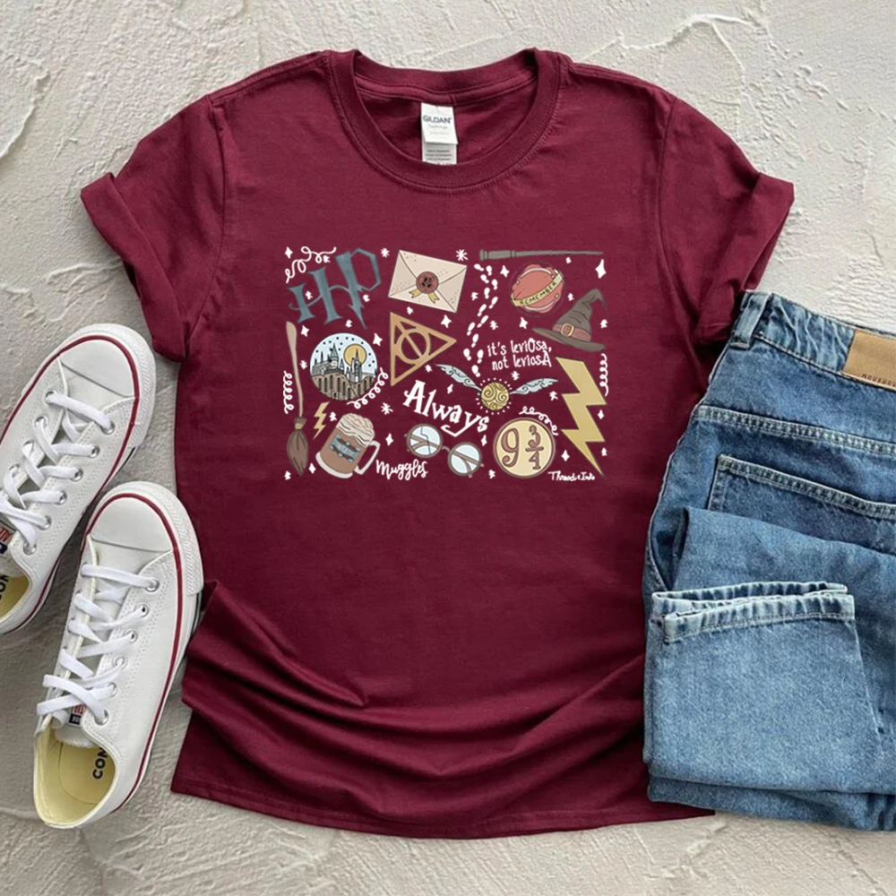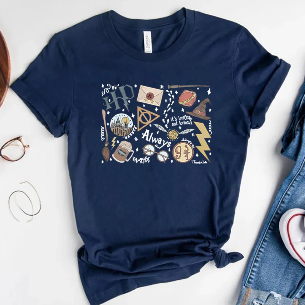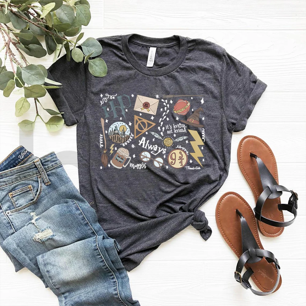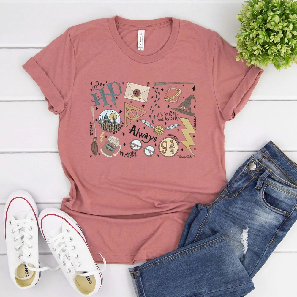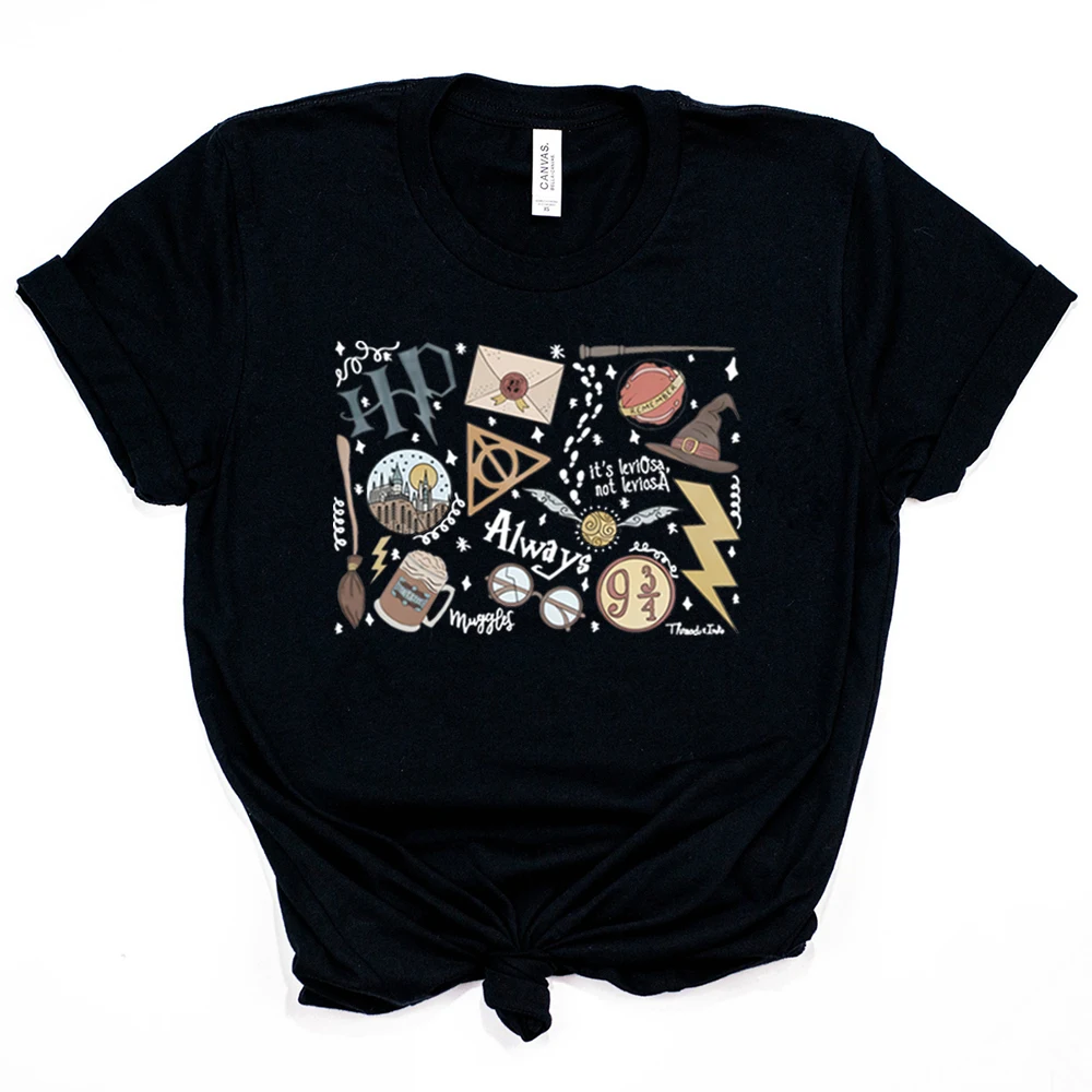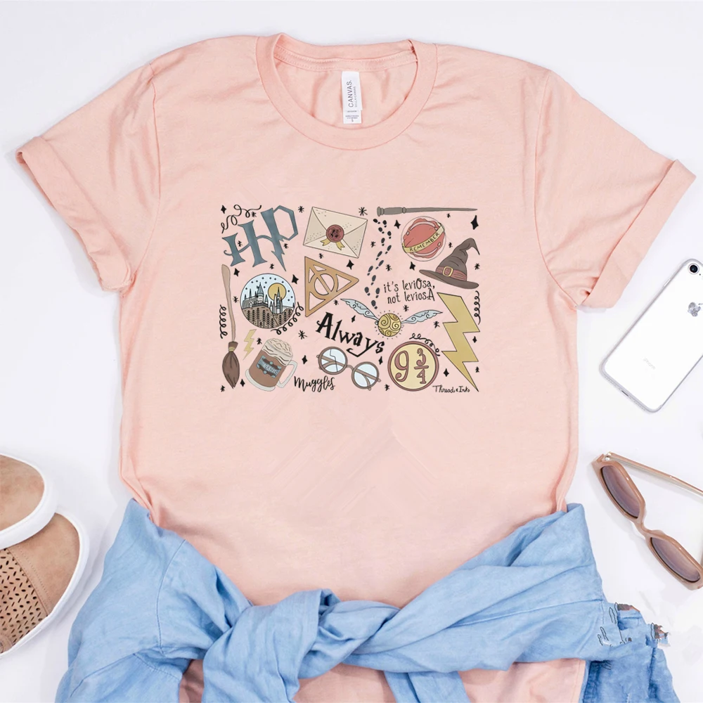 Vintage Wizard School 9 3/4 T-shirt Flying Car Magical Castle Shirt Luna Love Book Nerd Aesthetic Tee Magic Wizard World Tops