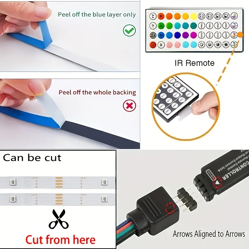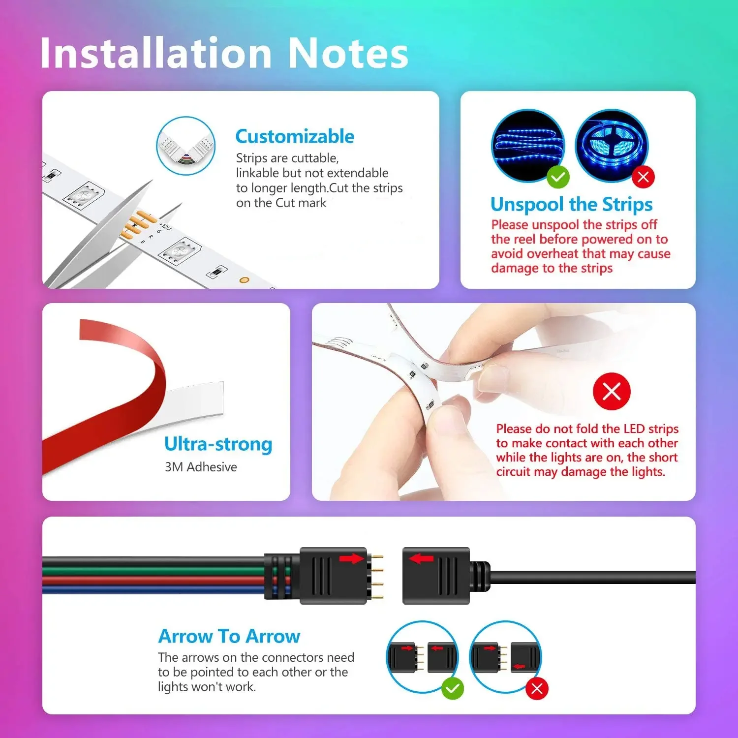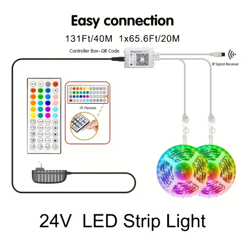 130ft/100ft LED Strip Lights, RGB 5050 24V Smart LED Strip Lights, 44Keys APP Controller, For Home Decor, TV, Computer