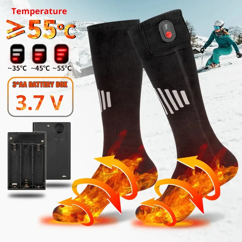 Heated Socks Winter Warm Snowmobile Skiing Heating Socks With Battery Case Outdoor Sport Thermal Heated Foot Warmer Ski Sports