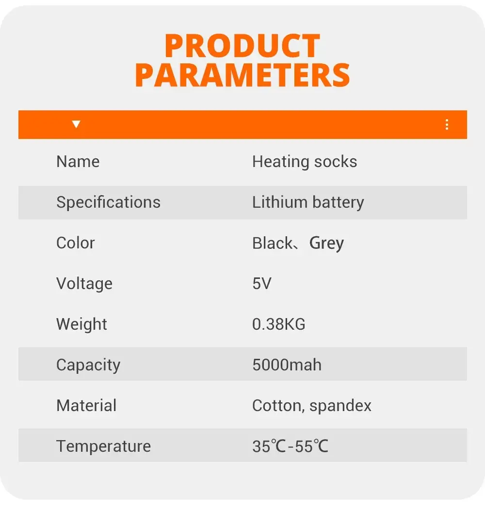 3.The battery field is specifically designed for the circuit board, which accommodates three built-in circuits, the bodily traits of the battery, the clever power saving cycle, using electrical energy, and the protection management by the impartial built-in circuit.The world's most safe, detachable heating socks!