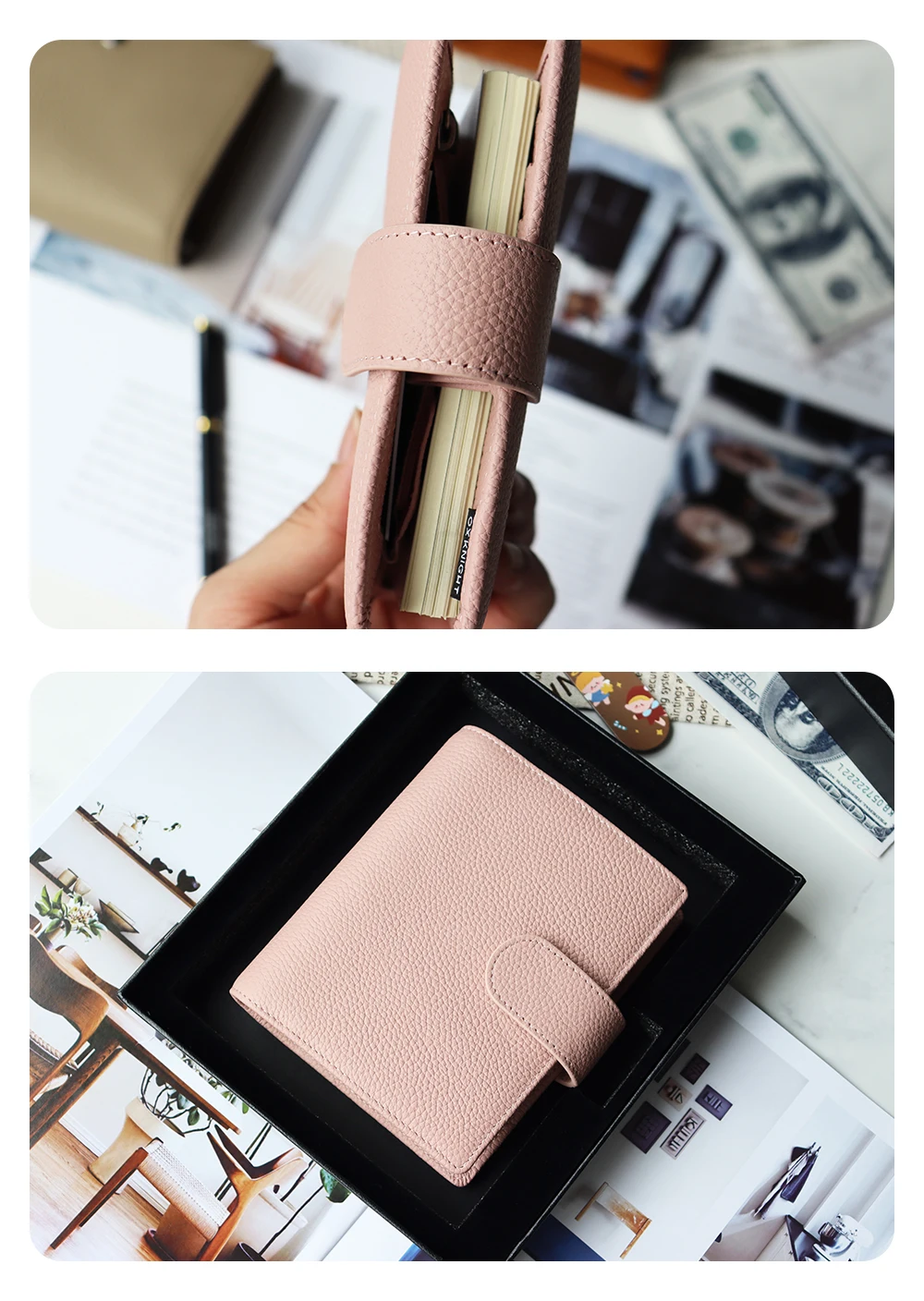 Practical pen insertion design, simple to write down.Textured cowhide material