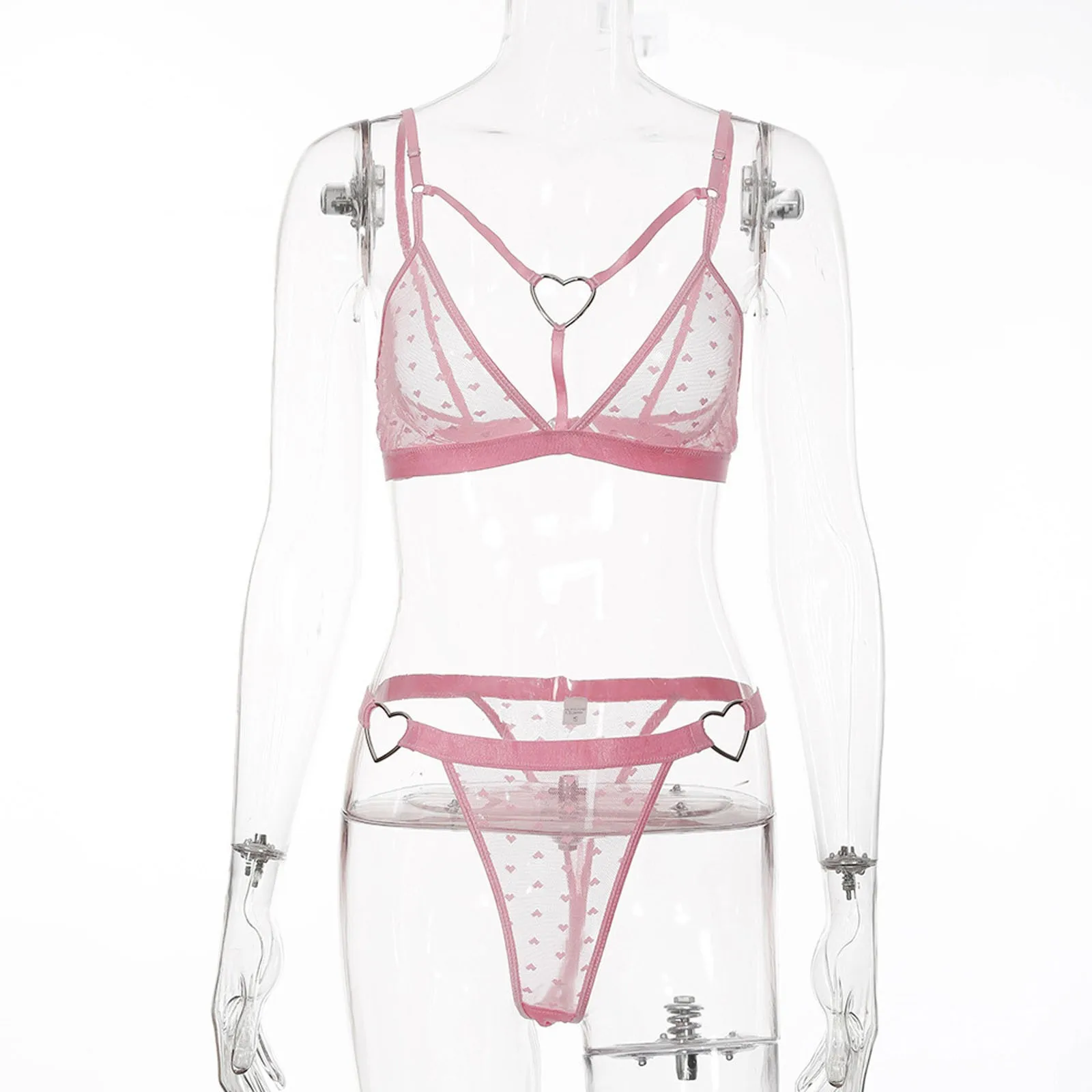 Sexy Bra Set Heart Print Lingerie Set Sexy Women Lace Pajamas Underwear Love Lingerie Bra Set Intimates нижнее бельё женское