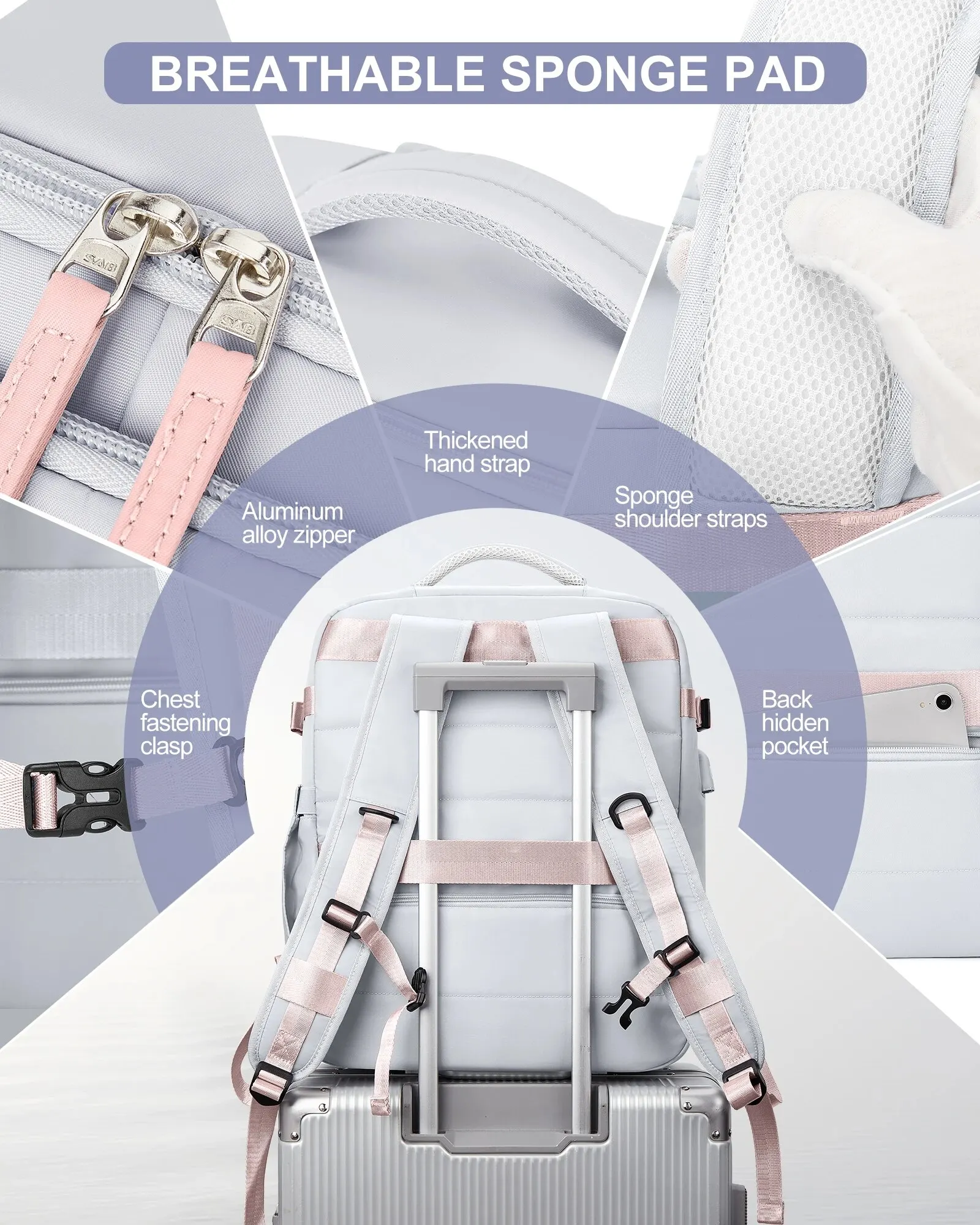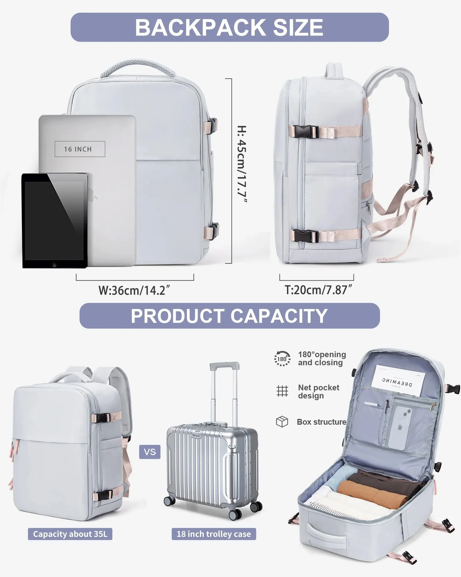 【With Trolley Sleeve & Anti-theft Pocket】A trolley sleeve on the again permits the journey backpack to connect to the deal with of the carry-on baggage for hands-free transport, and simpler carrying. There is a hidden anti-theft pocket on the again to guard your valuables from thieves.