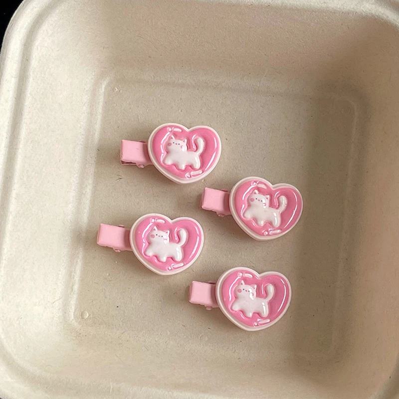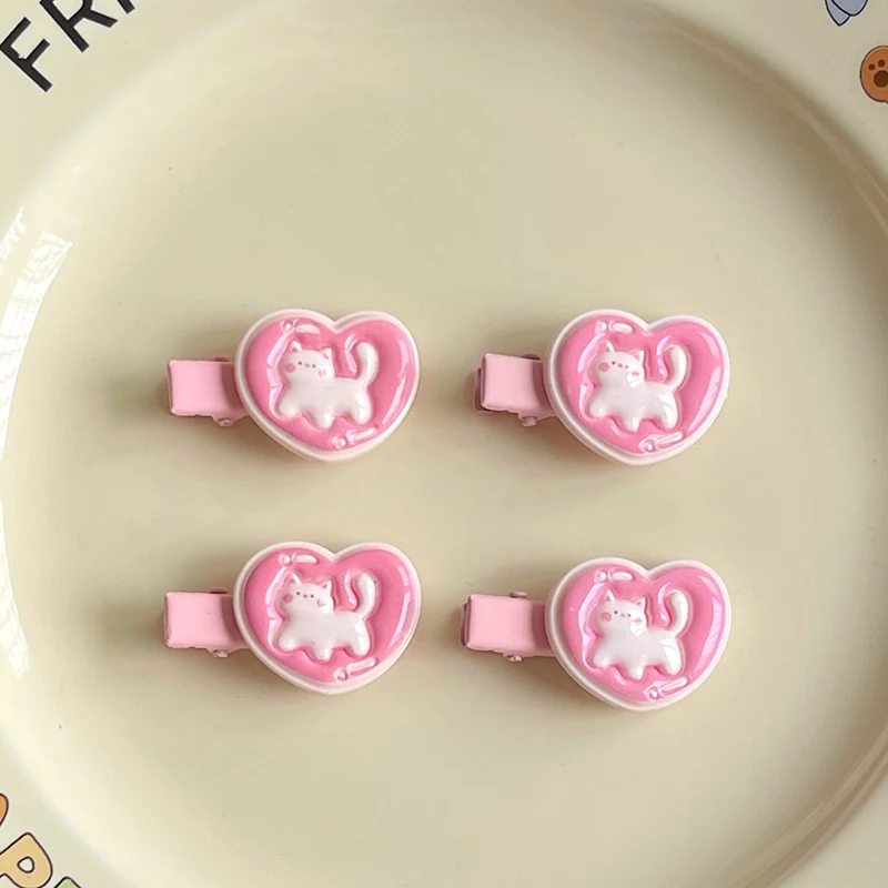 New Girls Cute Love Heart Cat Hair Clip Kids Lovely Pink Duckbill Clips Cute Sweet Cartoon Kitten Headband Clip Hair Accessories