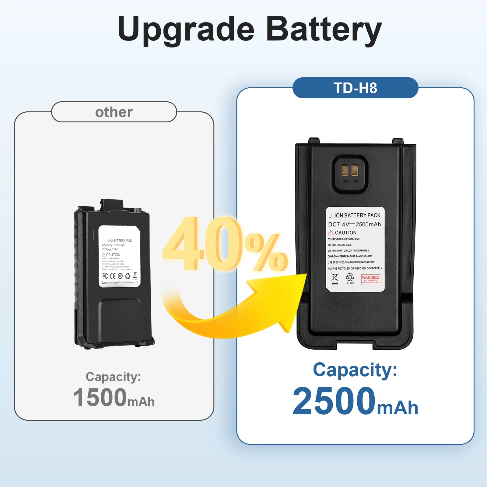 • ✅[LCD Large Color Screen] Bigger display, higher colour, higher element. Compare with conventional baofeng radio screens like baofeng uv-5r, baofeng bf-f8, baofeng ar-152, and baofeng uv-82, TD-H8's display can show the present output energy and has bigger textual content to indicate the channel data, providing you with a greater visible expertise than common transportable radio.