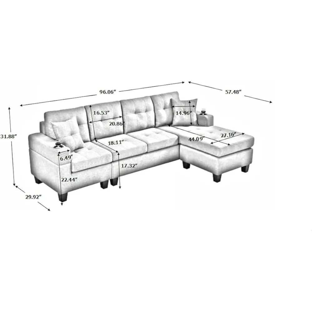 • 【Reversible Chaise & Cup Holders Design】The chaise of the sectional couch set can be freely positioned on the left or proper facet. Meet the placement wants of completely different rooms. Cup holders design on armrests to place drinks and cups,it can assist you higher take pleasure in this couch.