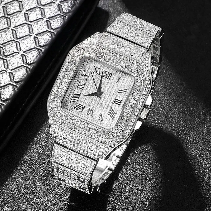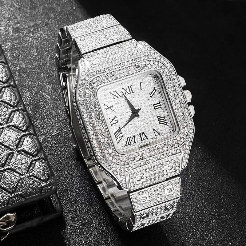 Home Uncategorized Necklace+Watch+Bracelet Iced Out Watch For Men Hip Hop 14MM Prong Cuban Chain Rapper Cuban Necklaces Set Punk Party Jewelry Gift