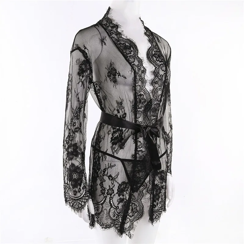 Home Uncategorized Sexy Women Lingerie Lace Night Dress Sleepwear Nightgown Bandage Deep V G-String See Through Sexy Sheer Sleep Dress Robe 2022