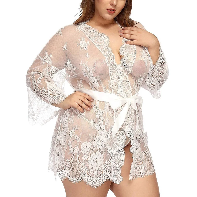 Sexy Women Lingerie Lace Night Dress Sleepwear Nightgown Bandage Deep V G-String See Through Sexy Sheer Sleep Dress Robe 2022