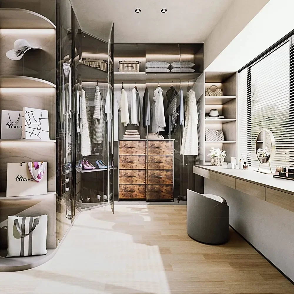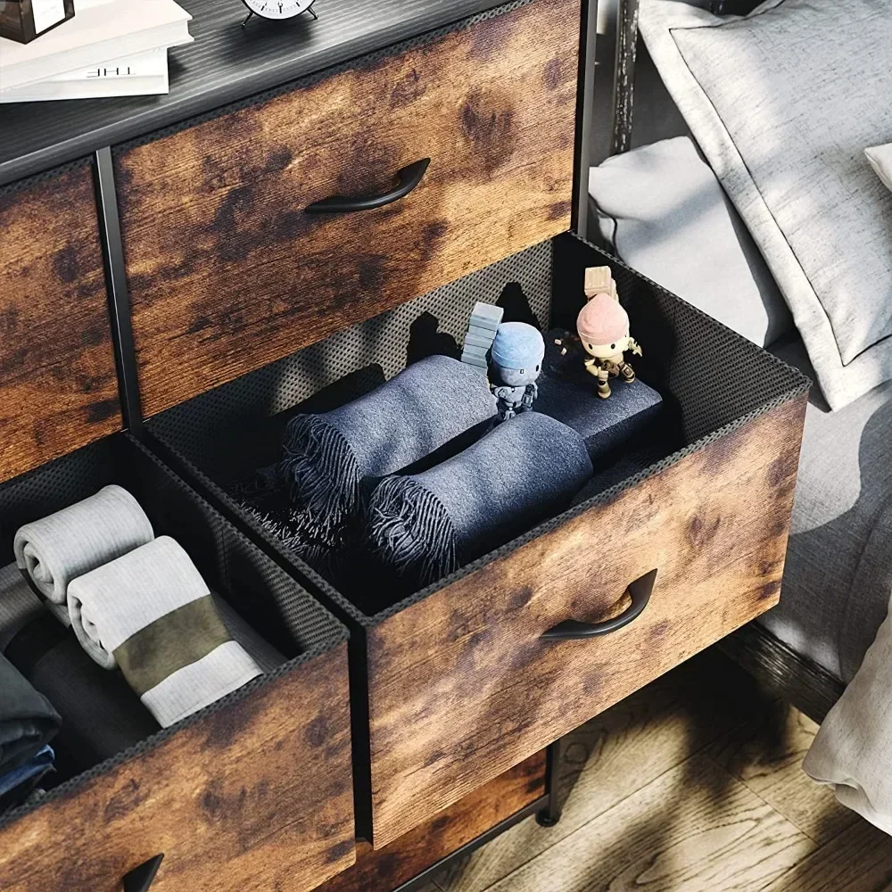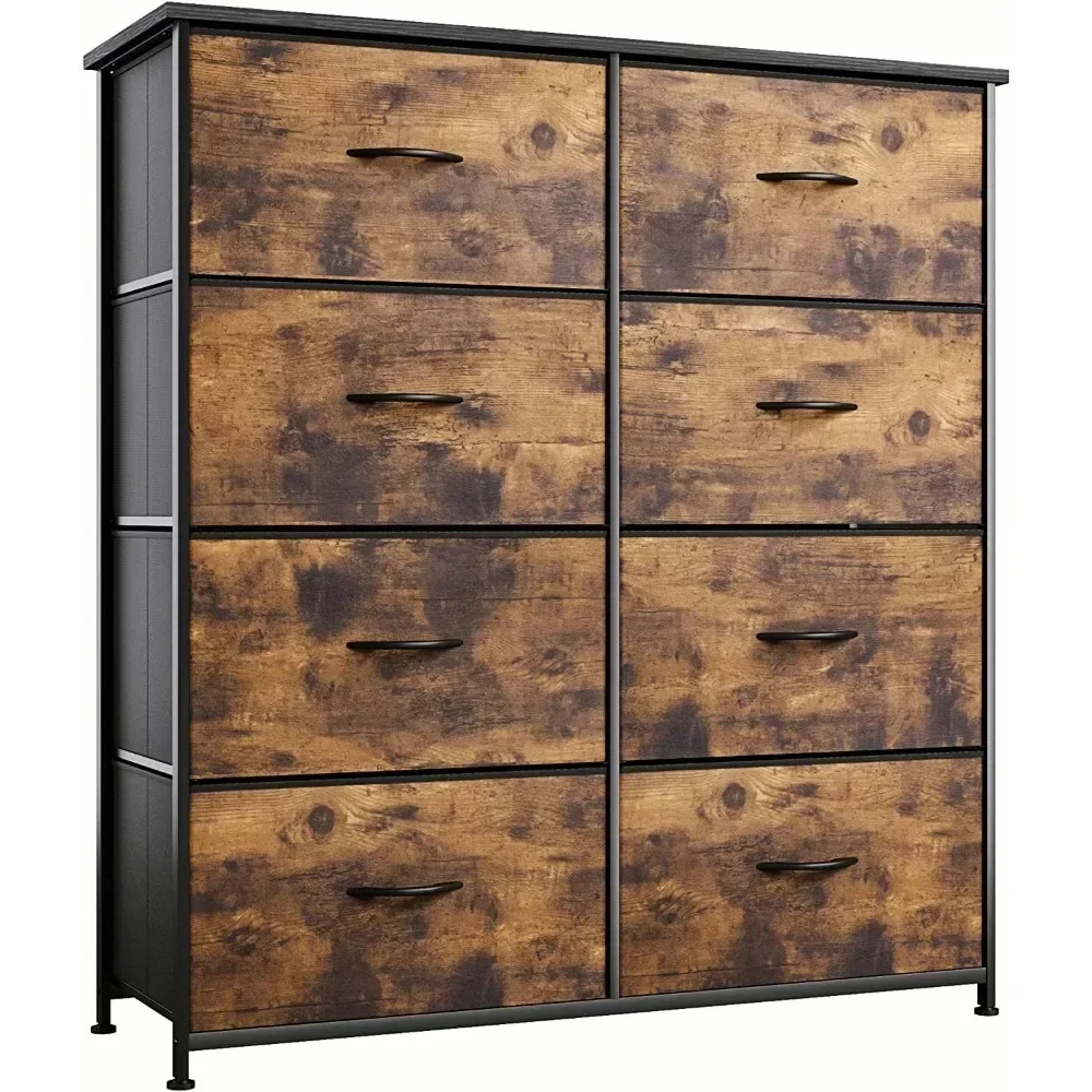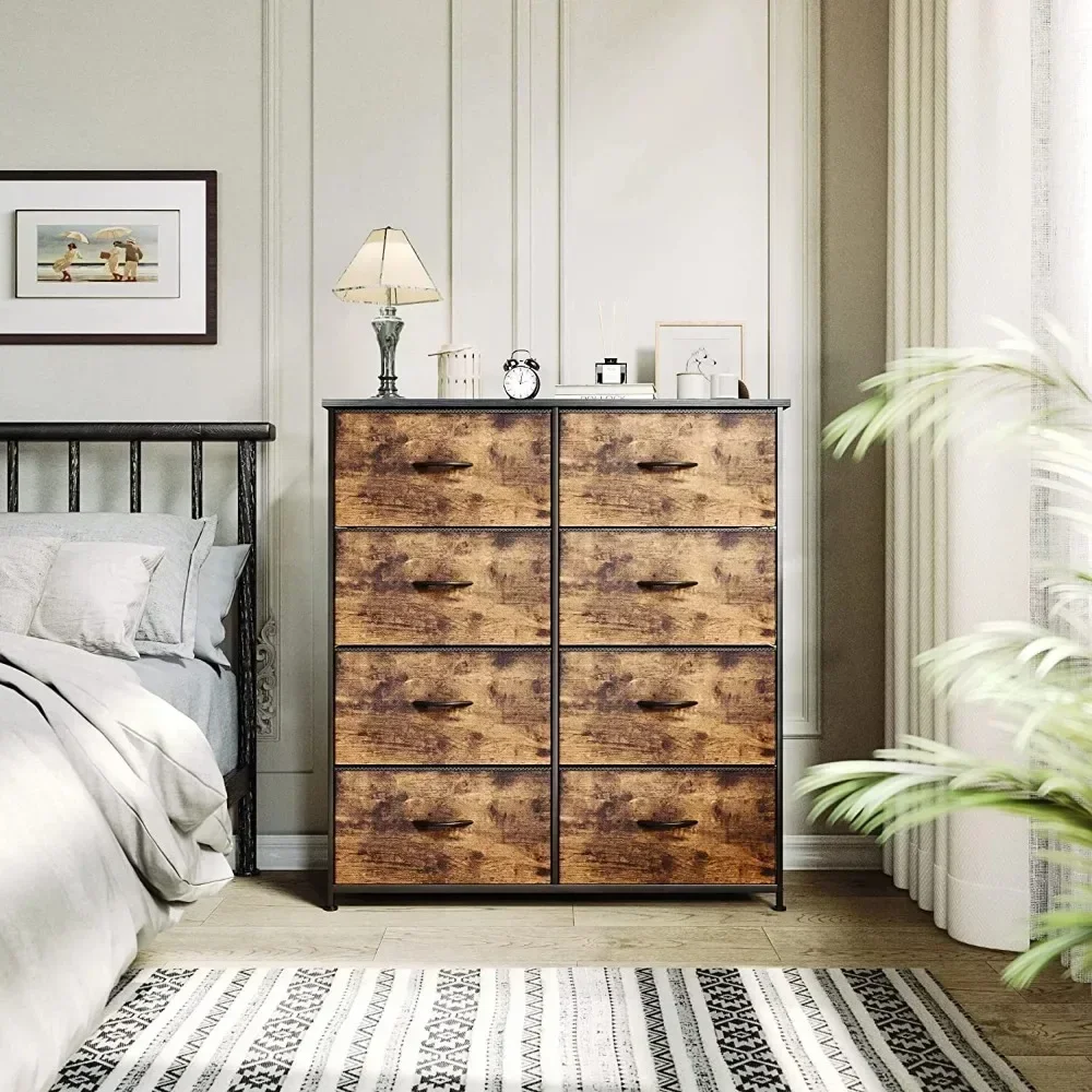 • QUALITY CONSTRUCTION – Structured with a robust metallic body and a sturdy MDF picket high; Contains 8 removable and foldable drawers with easy-to-pull picket handles; Held up by 4 adjustable plastic legs that forestall scratches to your ground; The revolutionary crossbar design on the again enhances product stability; The dresser might be secured to a wall with screws
