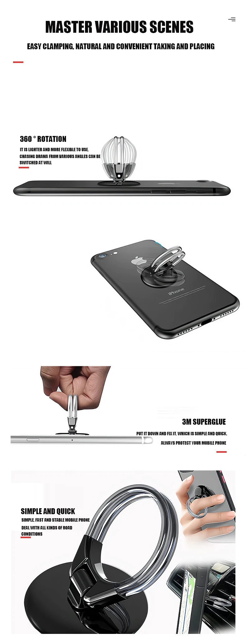 Function: The bracket could be pasted on the again of the cellphone, additionally could be utilized to automobile vents, easy and moveable