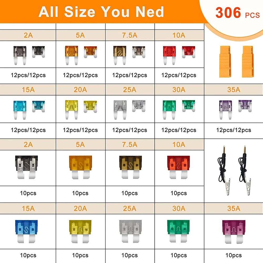 306 Pcs Car Fuse Amplifier with Box Combination Car Blade with Inspection Circuit Electric Pen