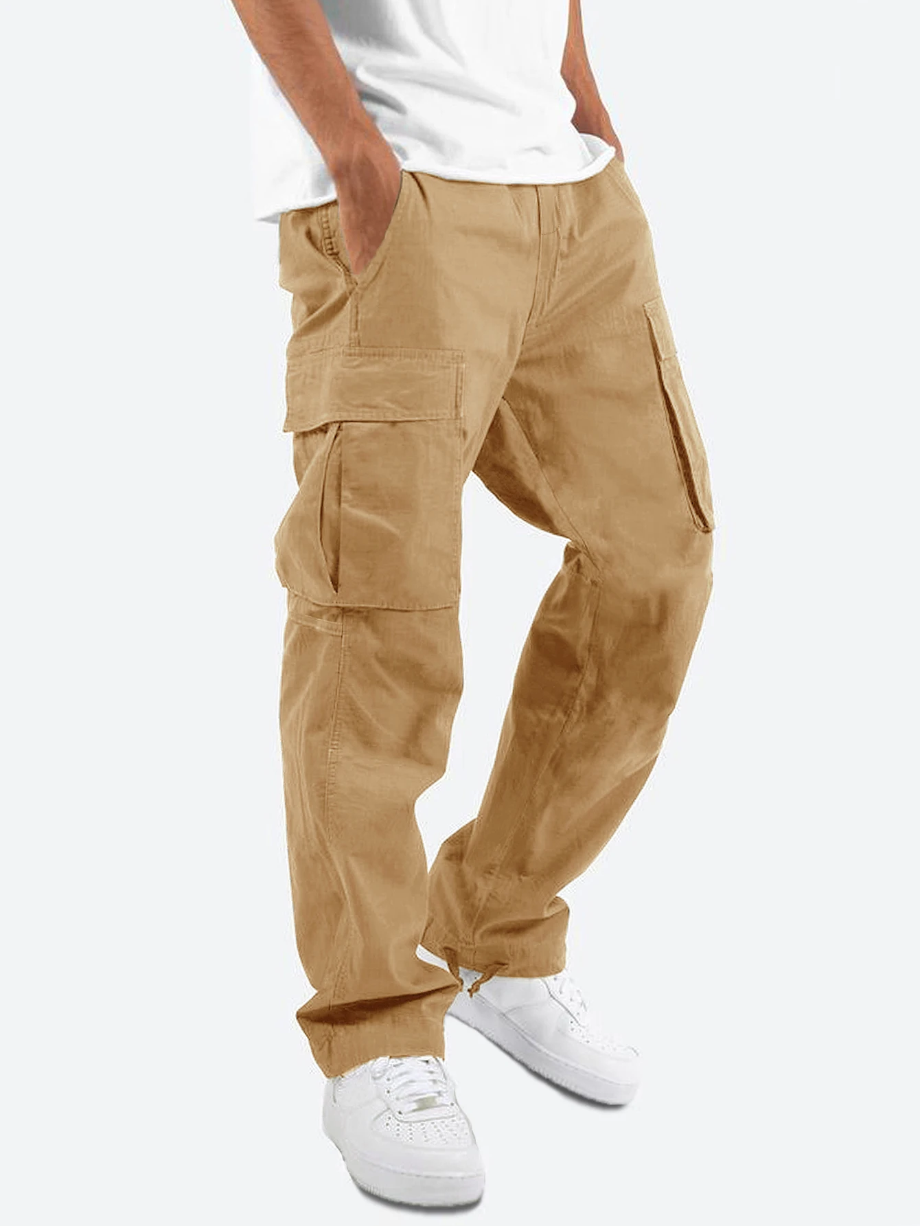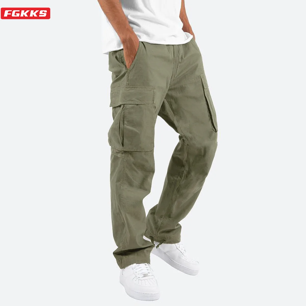 FGKKS New Pants Men’s Loose Straight Multi-pocket Solid Color Versatile Work Wear Pants Cotton Casual Male Trousers