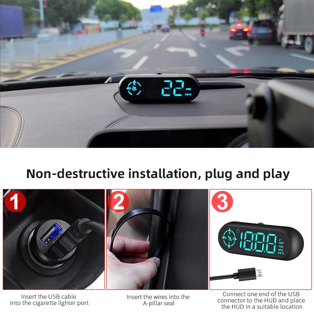 G9 Car HUD With GPS Head Up Display Compass Clock Speedometer