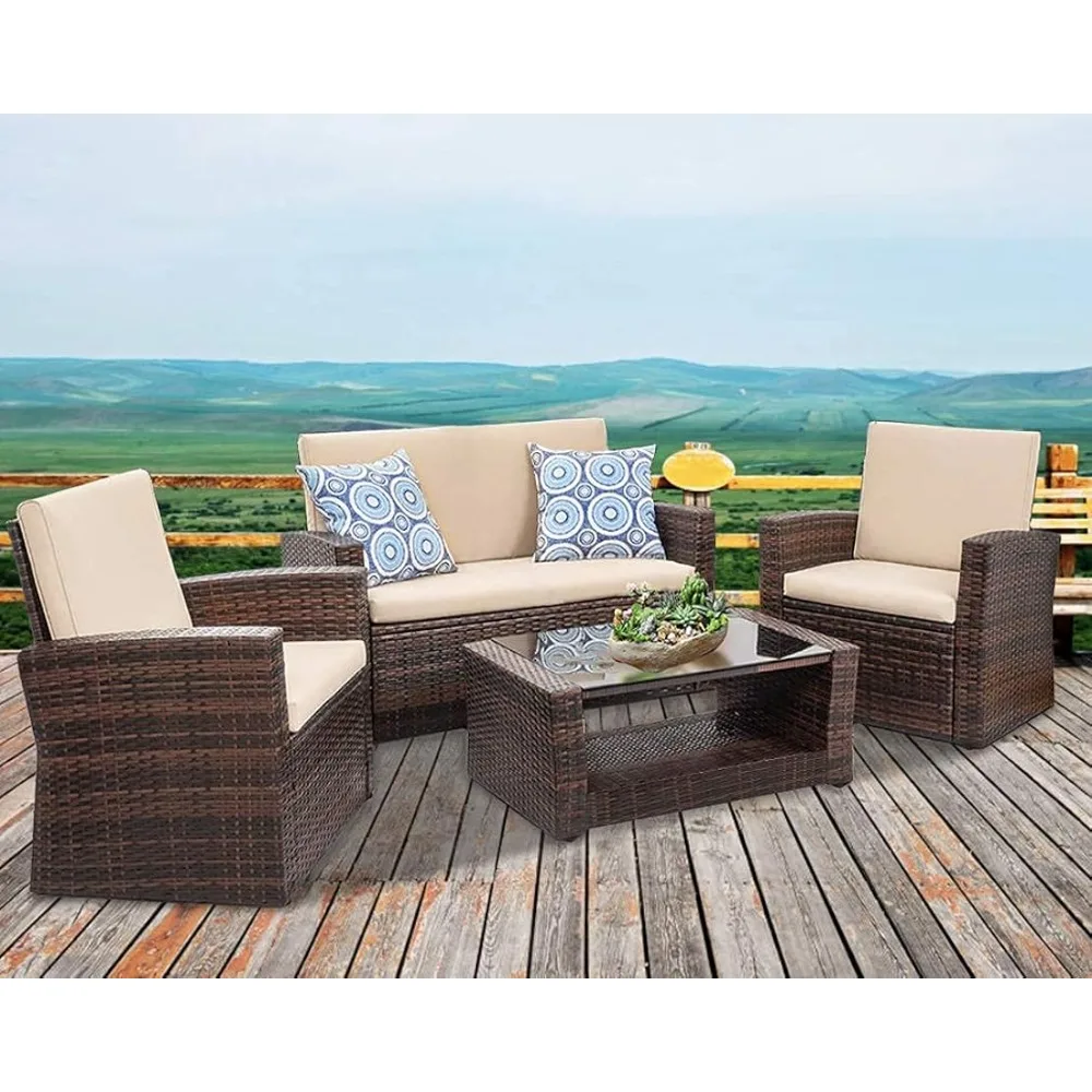 Patio Furniture Sets 4 Piece Rattan Chair Patio Sofas Wicker Sectional Sofa Outdoor Conversation