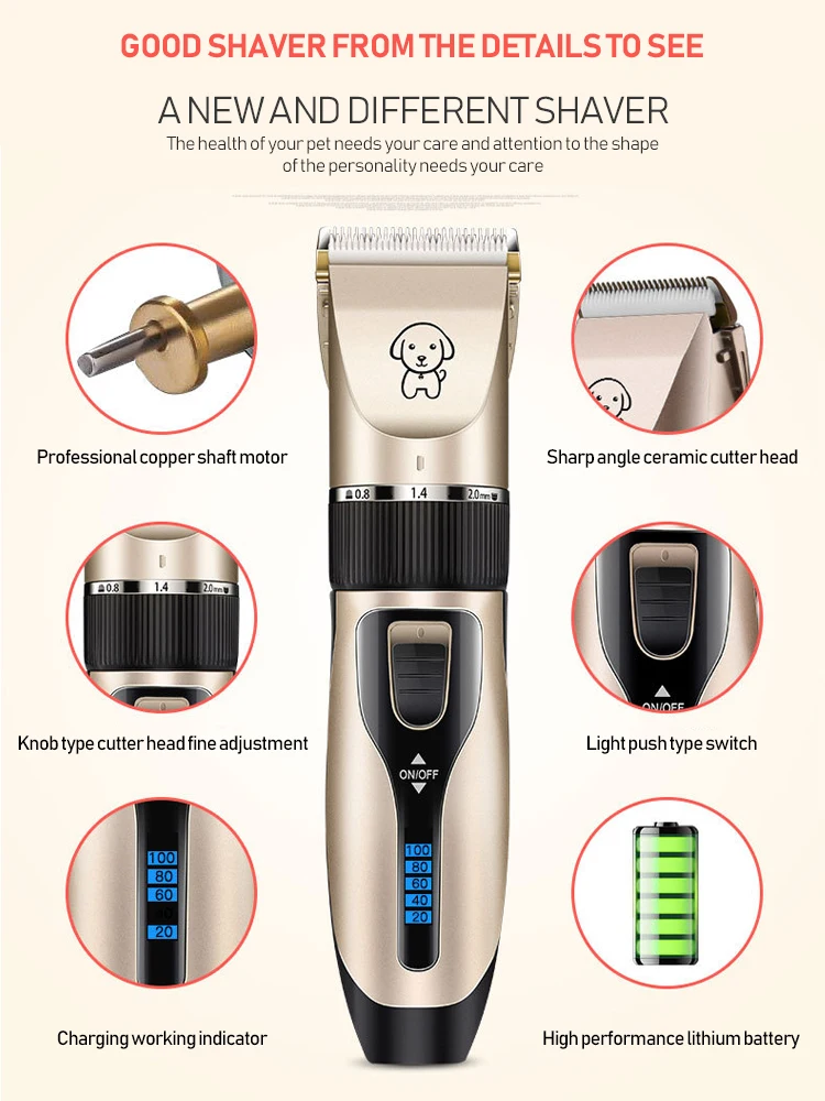 Home Uncategorized Pet Hair Trimmer Dog Cat Rabbit Haircut Trimmer Shaver Set Cordless Rechargeable Smooth No Jamming Pet Hair Trimmer