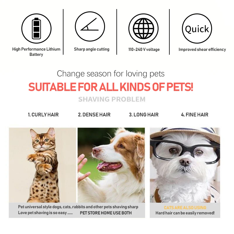 Pet Hair Trimmer Dog Cat Rabbit Haircut Trimmer Shaver Set Cordless Rechargeable Smooth No Jamming Pet Hair Trimmer
