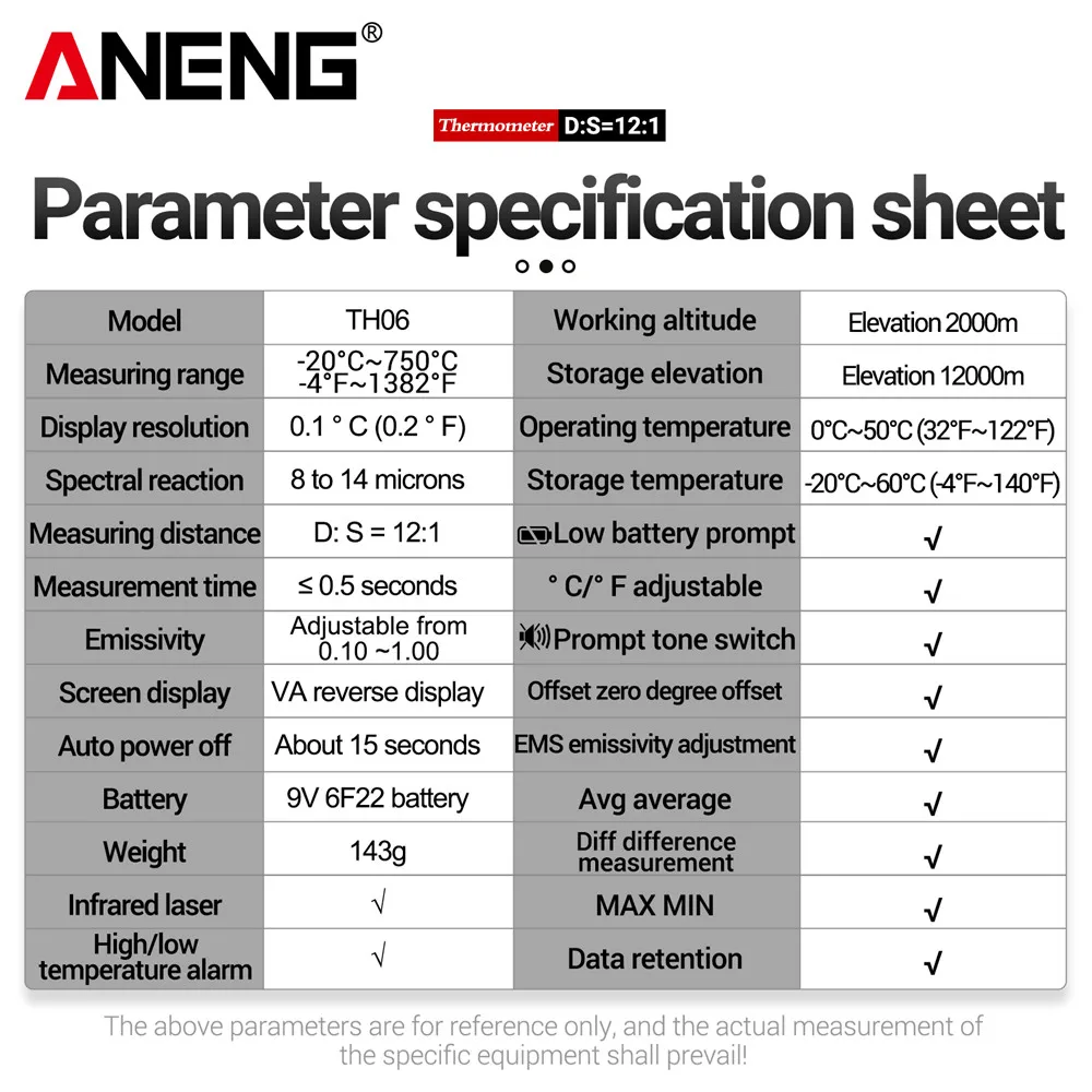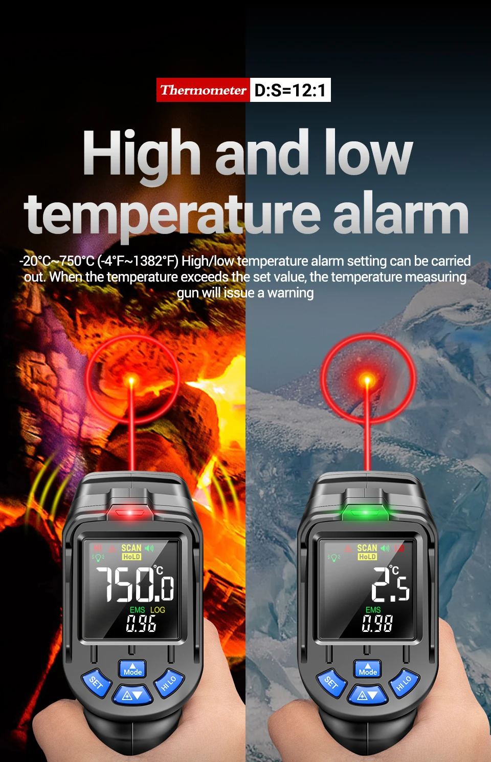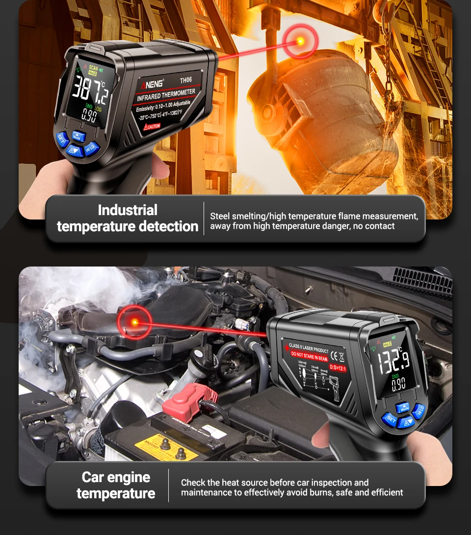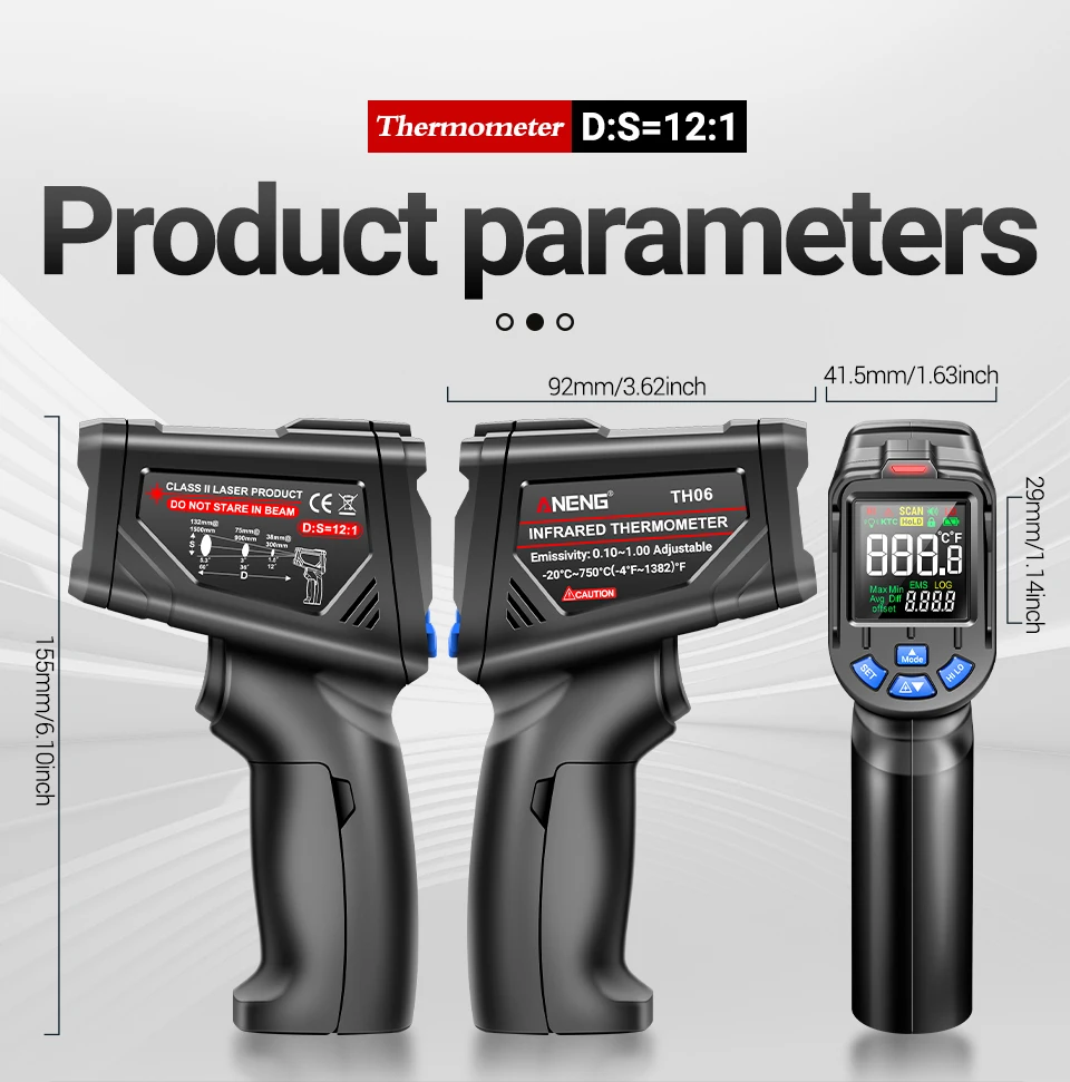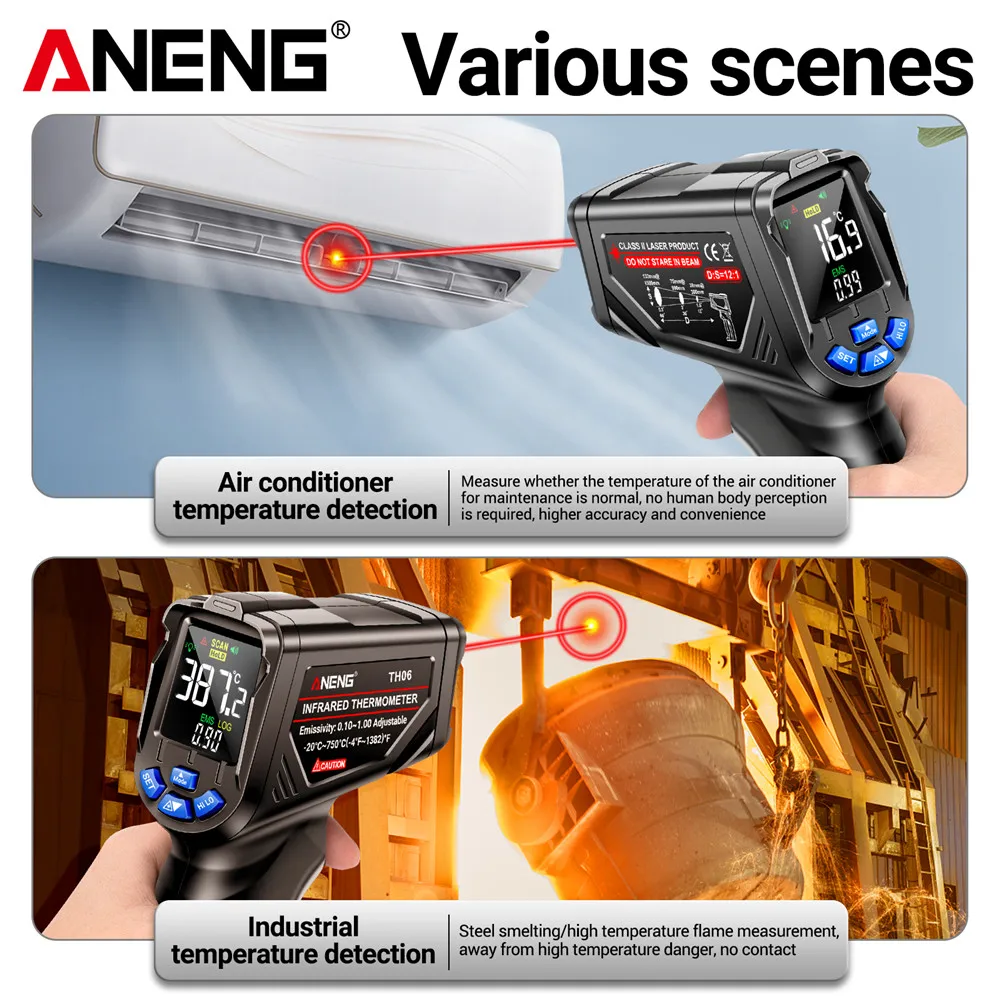 ANENG TH06 Infrared Laser Thermometer -20℃~750℃ -4℉~1382℉ High/Low Temperature Gun With Va Color Reverse Screen Industrial Tool