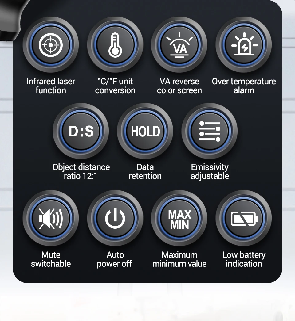 This thermometer is a working rediation thermometer (hereinafter known as a product) that may decide its floor temperature by measuring the infrared vitality rediated from the floor of the goal physique.