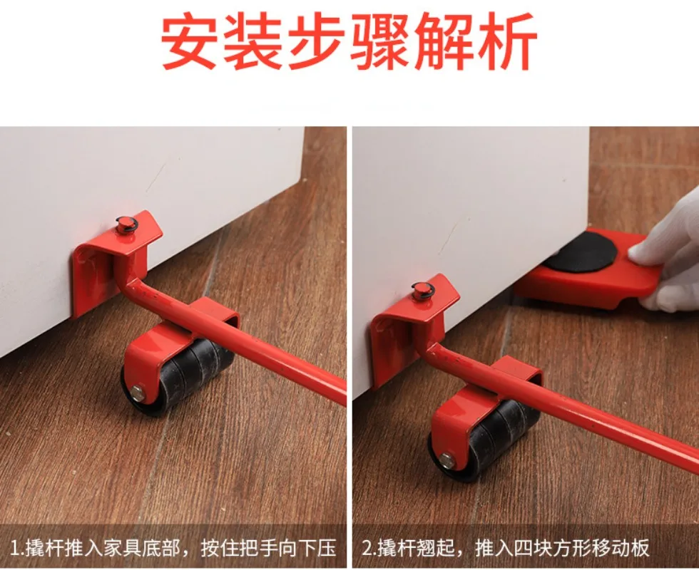 Place the lifter below the furnishings. Lift it up. Place the 4 pcs rollers into the 4 corners. Capable of lifting and carrying 150 KG/330Lbs. Easily lifts furnishings with out hurting your again.