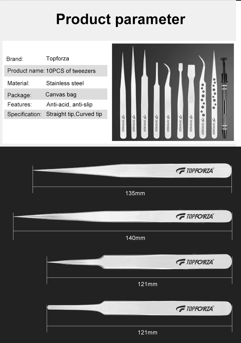 Home Uncategorized 10Pcs/Bag Stainless Steel Tweezers Set Precision Curved Straight Repair Tools Professional Maintenance Industrial Tweezers