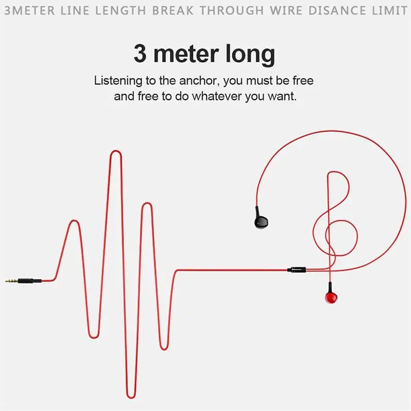 3m Long Wired Control Headphones In-Ear Clear Bass Ergonomic Monitoring Headset Mobile Smart Phone Headset Stereo Music Earphone