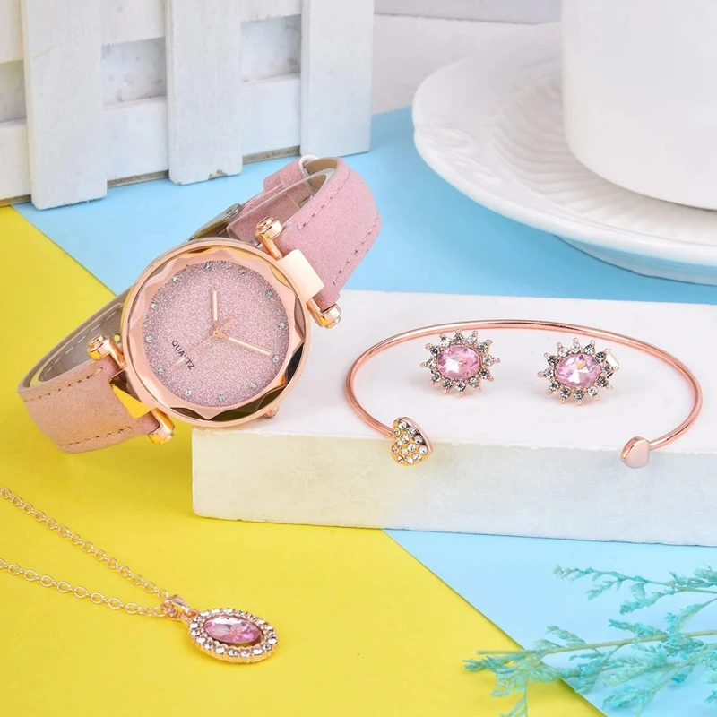 4PCS Set Luxury Women Watches Rhinestone Fashion Elegant Wristwatch Quartz Watch Ladies Clock For Girl Gift