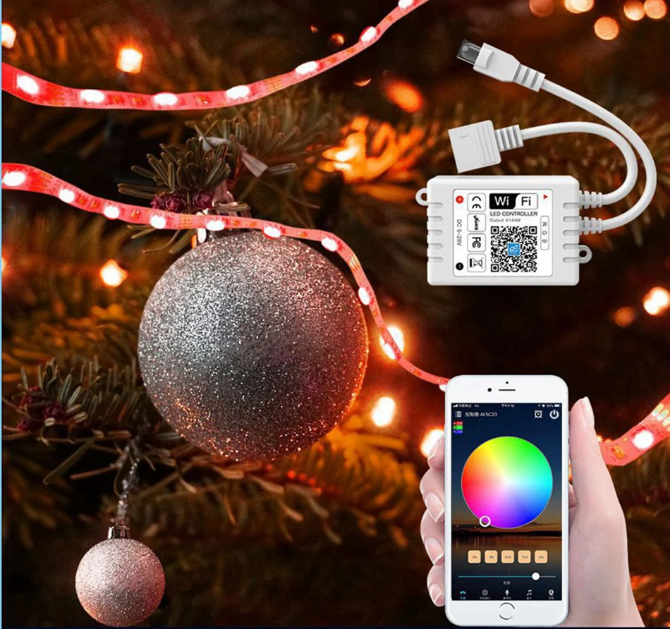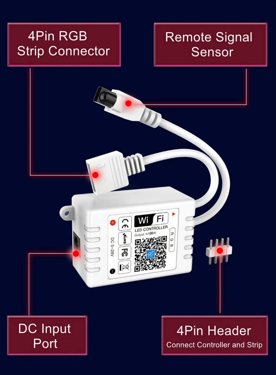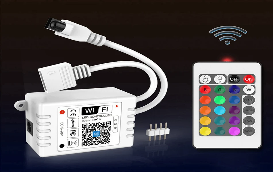 Mini DC5V-24V RGBW/RGB WiFi APP LED Controller With IR 24Key Remote For 5050 2835 RGB/RGBW LED Strip