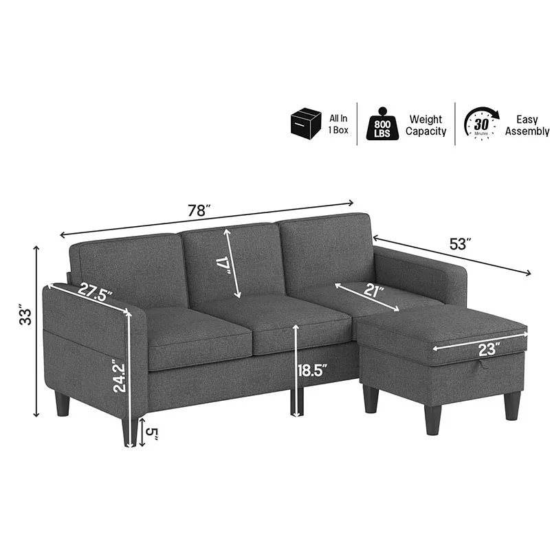 【CLASSIC LOOK】-Minimalist look that may be mixed with quite a lot of dwelling types. The 3-seater couch and ottoman are manufactured from breathable skin-friendly linen material and are outfitted with high-density foam cushions, cushions cannot simply deform and might present snug and delicate help. You can chill out in the lounge or watch TV.
