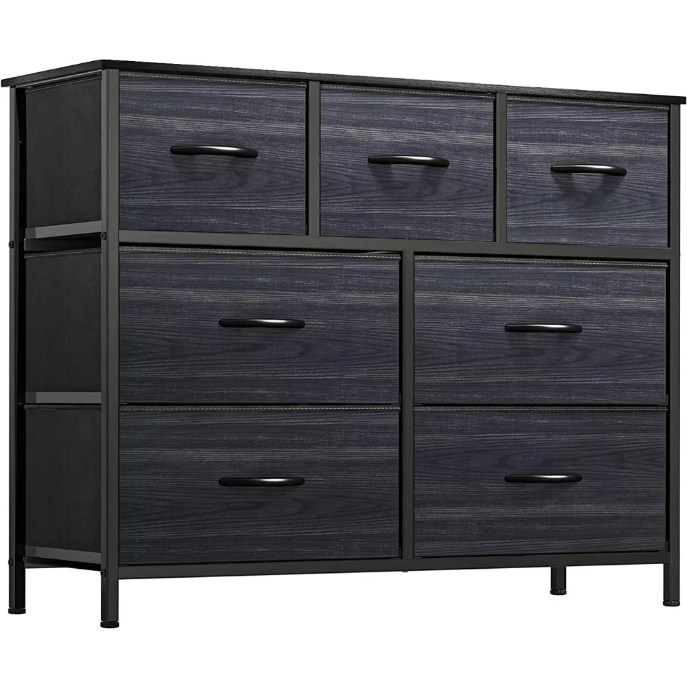 Home Uncategorized YITAHOME Dresser TV Stand, Dresser for Bedroom, Fabric Dresser with 7 Drawers, Furniture Storage Tower Cabinet,Black Wood Grain