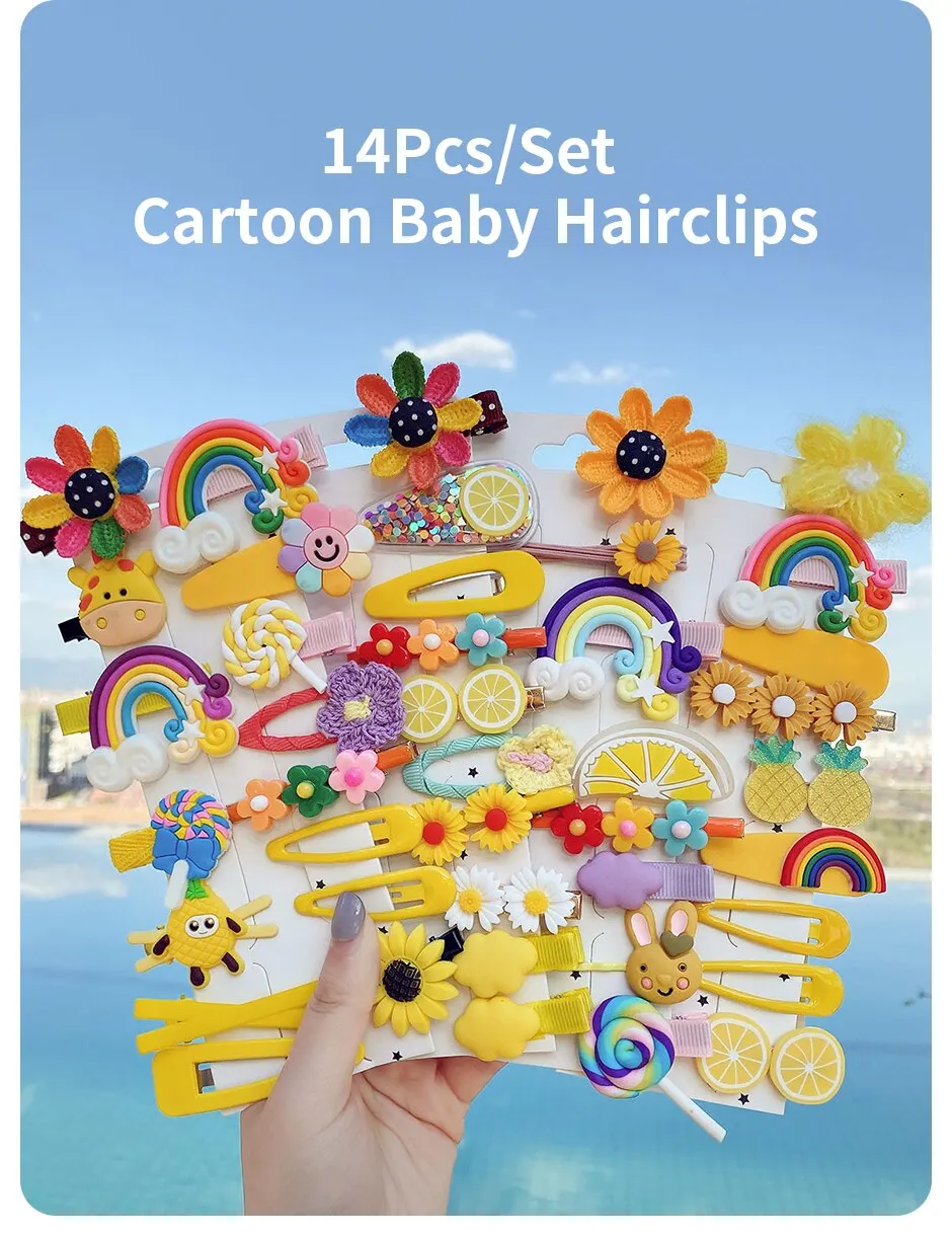 • 14Pcs Set :This set contains 14 totally different hair clips, offering a wide range of choices for styling your kid’s hair.