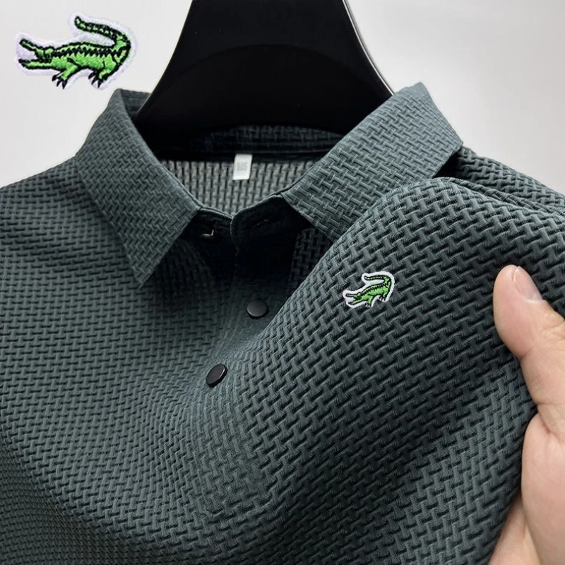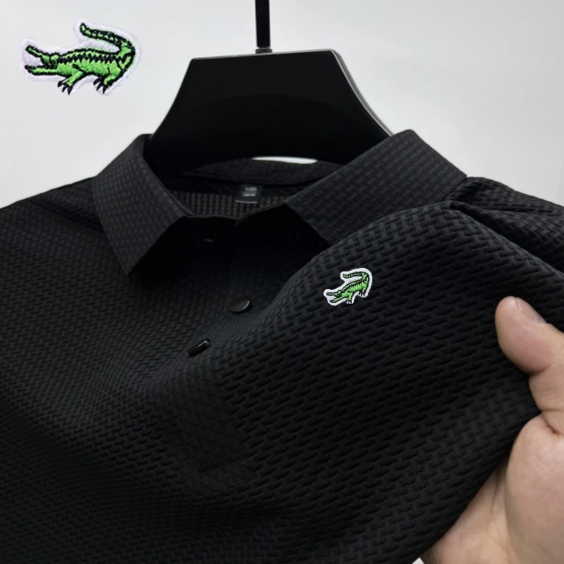 Home Uncategorized Men’s Embroidered Brand Knitted Cool Polo Shirt Spring/Summer High-end Fashion Business Casual Breathable Short Sleeved T-shirt