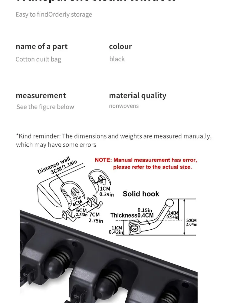3 hooks and 4 hooks: 25.9cm/10.19in x 6.3cm/2.48in