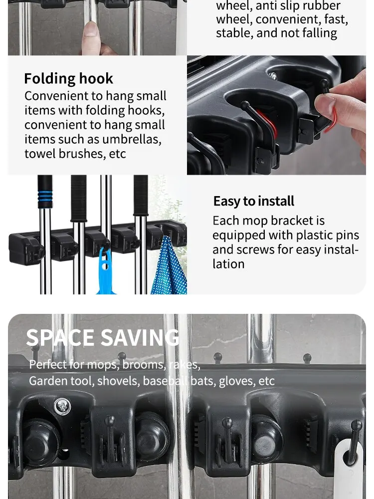 • Multi-functional design :This wall-mounted mop holder can maintain brooms, mops, and different cleansing instruments, making it a flexible addition to any residence.