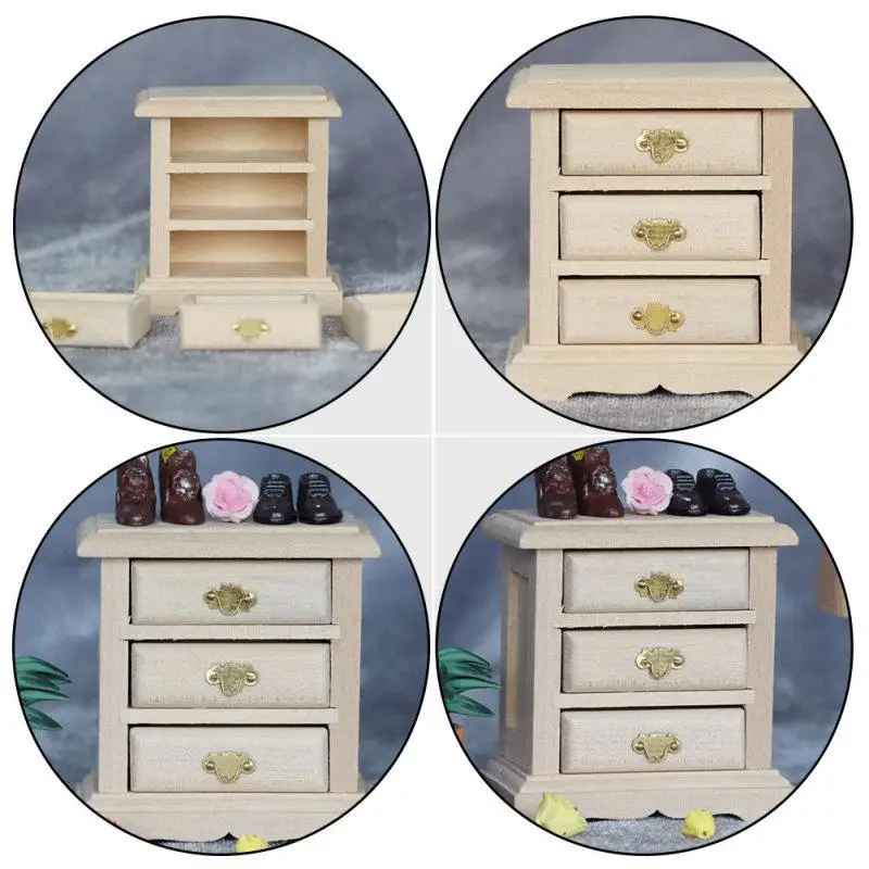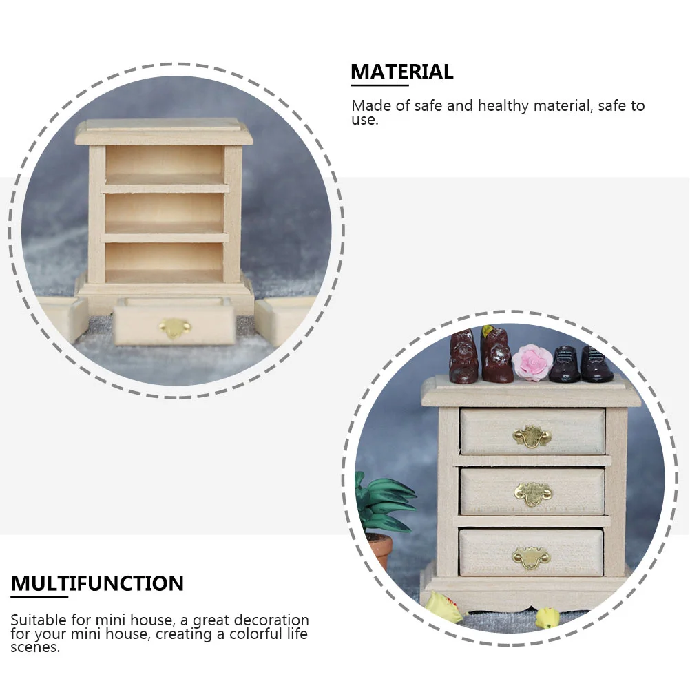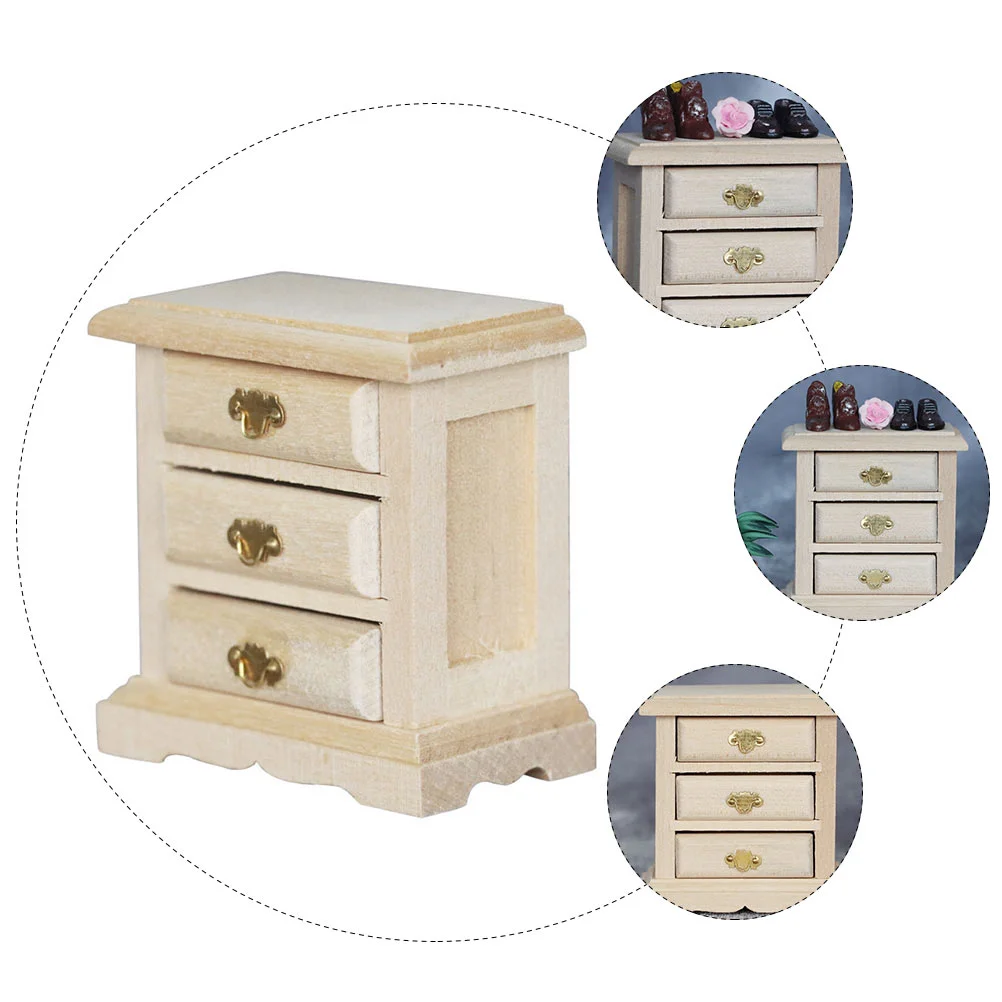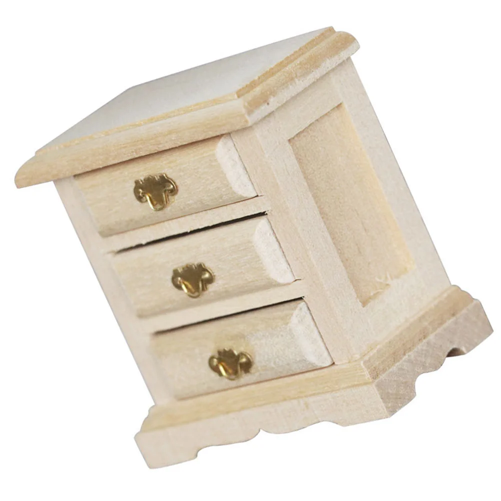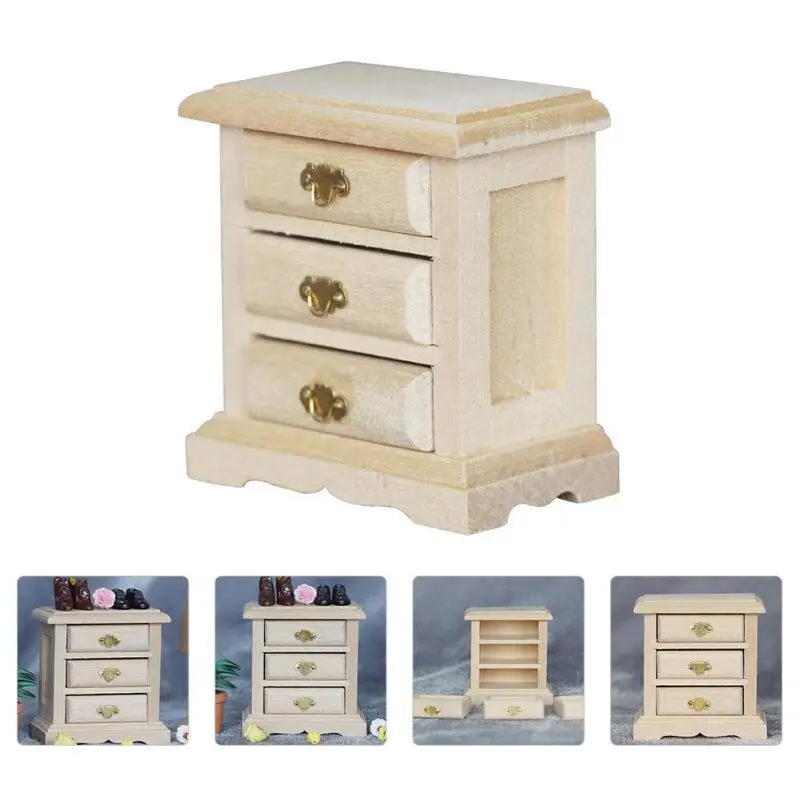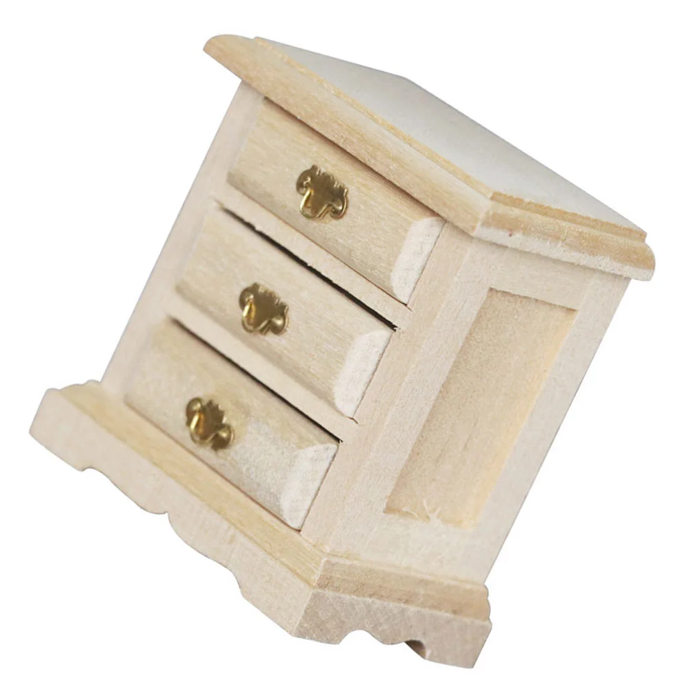 1PC Mini House Night Table Model Wooden Mini Bedside Table Model Decoration Furniture
