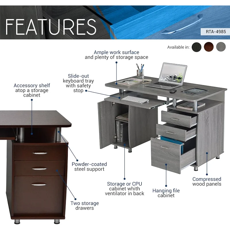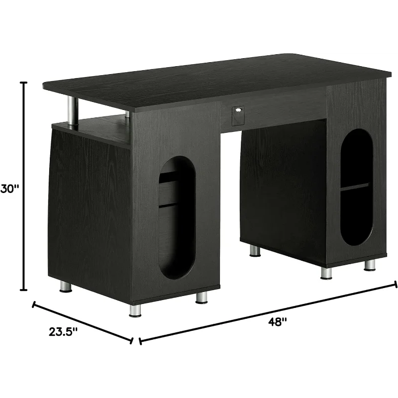 - Product Dimension(LxDxH) 48″x23.5″x30″; Ships in 2 bins; Assembly Required Yes; Shape Rectangle; Side CPU/storage cupboard with a detachable shelf that may positioned up, down or eliminated; Country Of Origin China; 5 Year Limited Warranty; Color Espresso; Warranty 5-Year Limited Warranty; Weight capability 80 lb