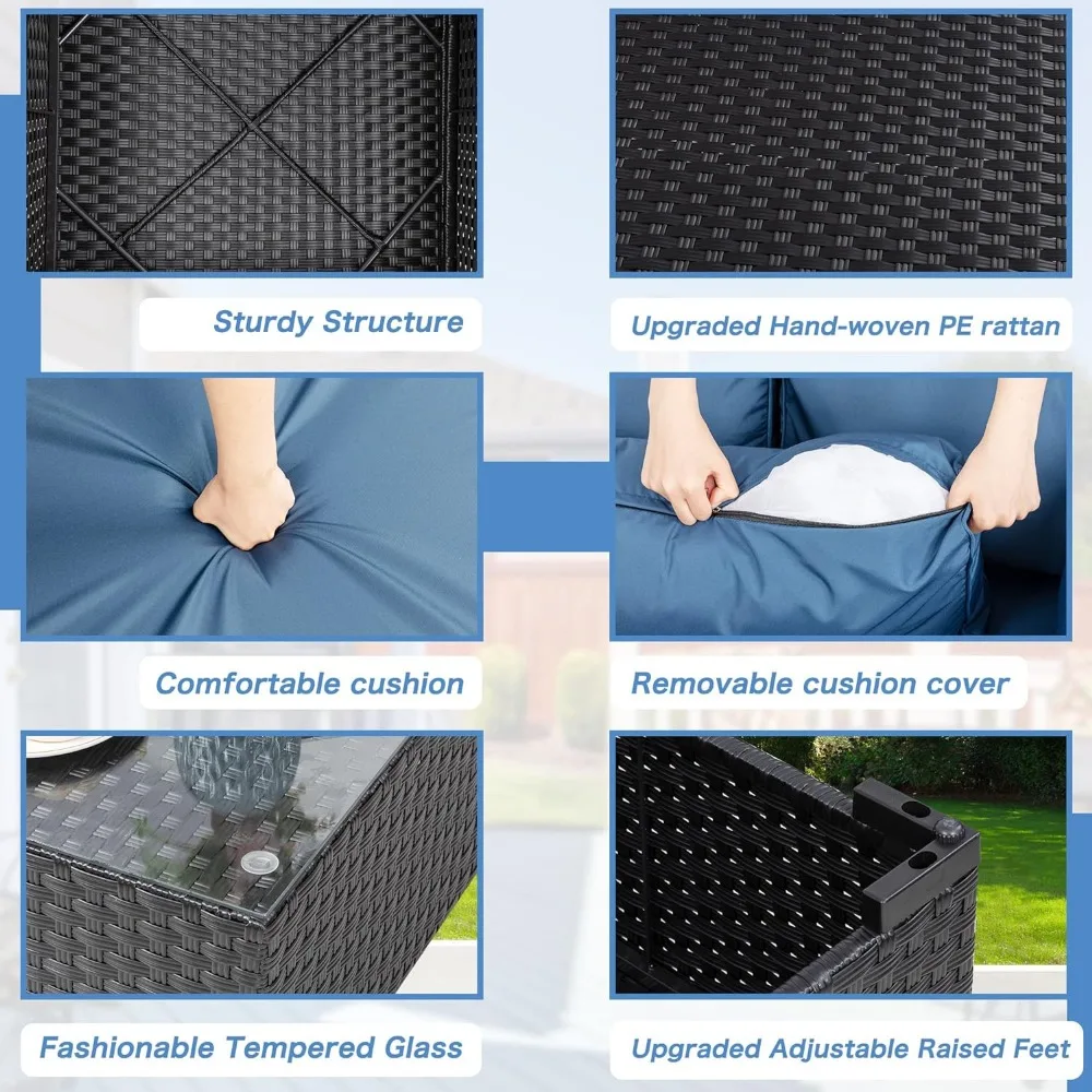 Patio Furniture Set Material: Made of pe rattan wicker and metal body, all-weather resistant artificial resin is constructed to final whereas having a modern and trendy end. Our wicker is powerful and sturdy but additionally light-weight on the identical time. Breathable seat cushions for optimum consolation and leisure..Care Instructions: ‎Machine Wash
