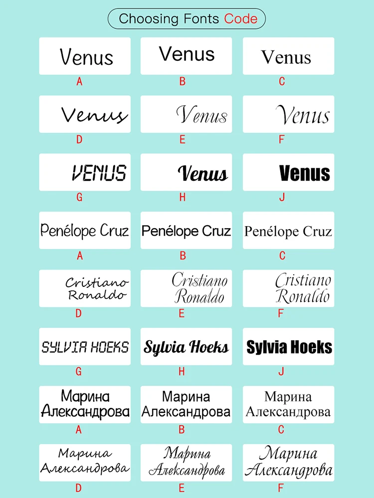 Compare fonts, select uppercase and lowercase letters in keeping with your choice