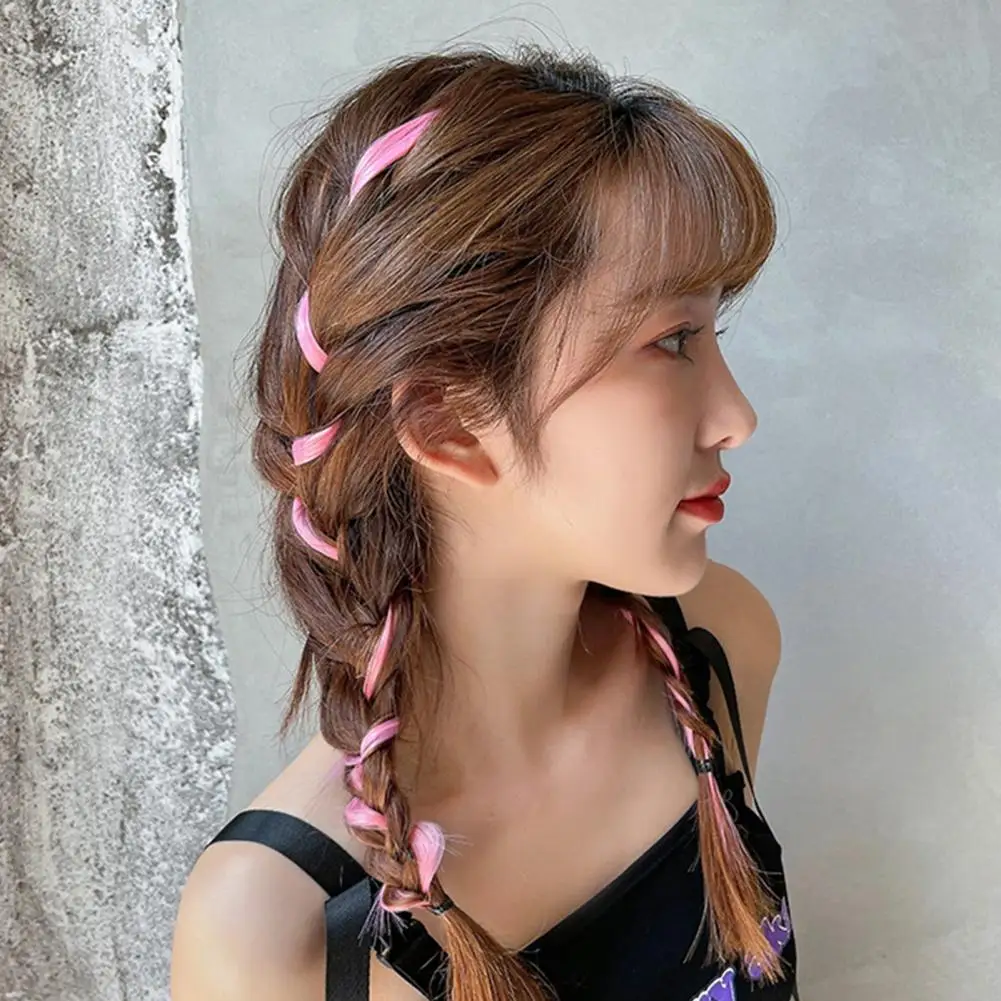 Highlight Hair Piece Straight with Clip Easy to Wear Trace-less Multicolor Makeup Tool Artificial Fiber Highlight Hair Extensions Wig for Women