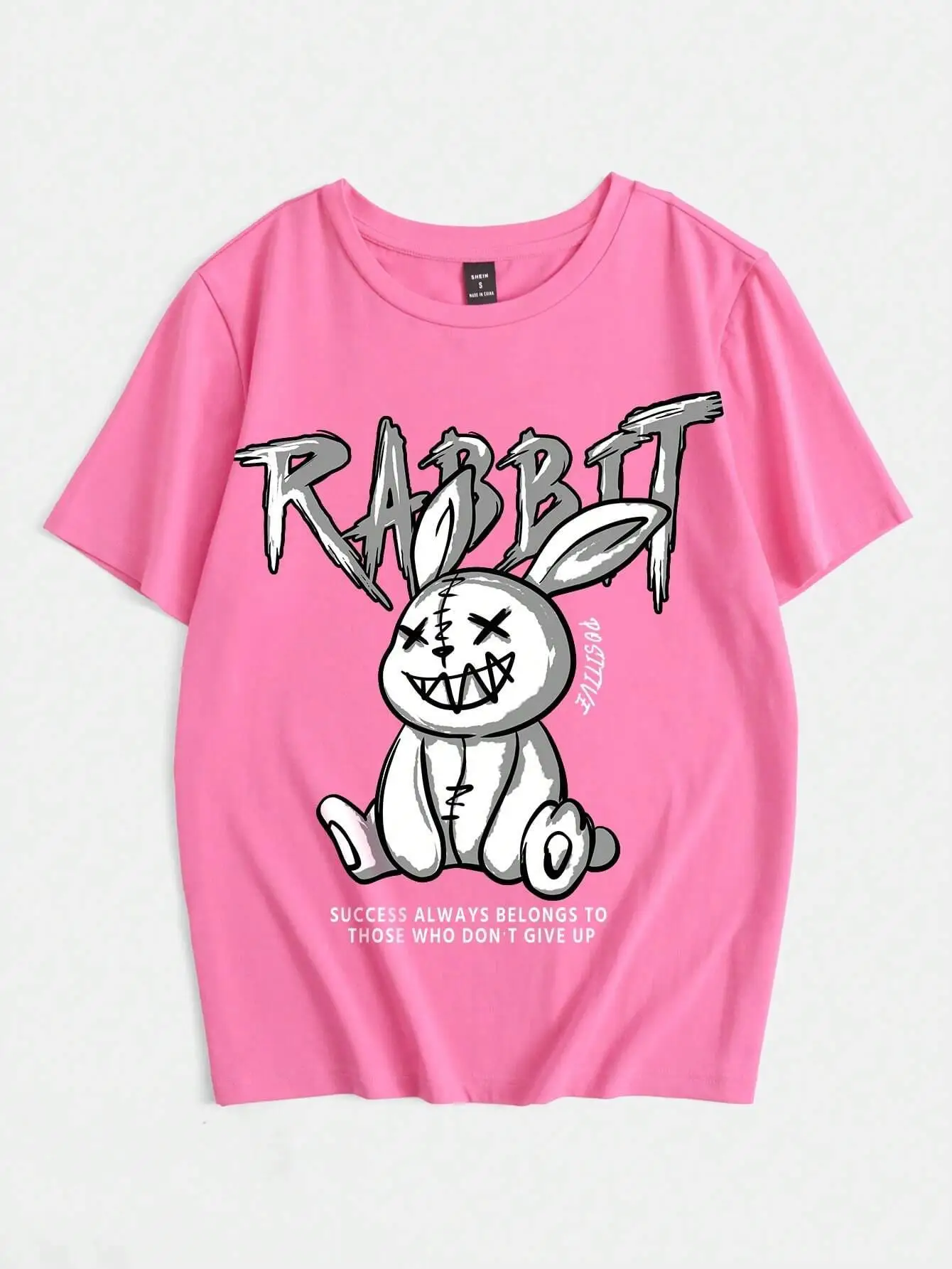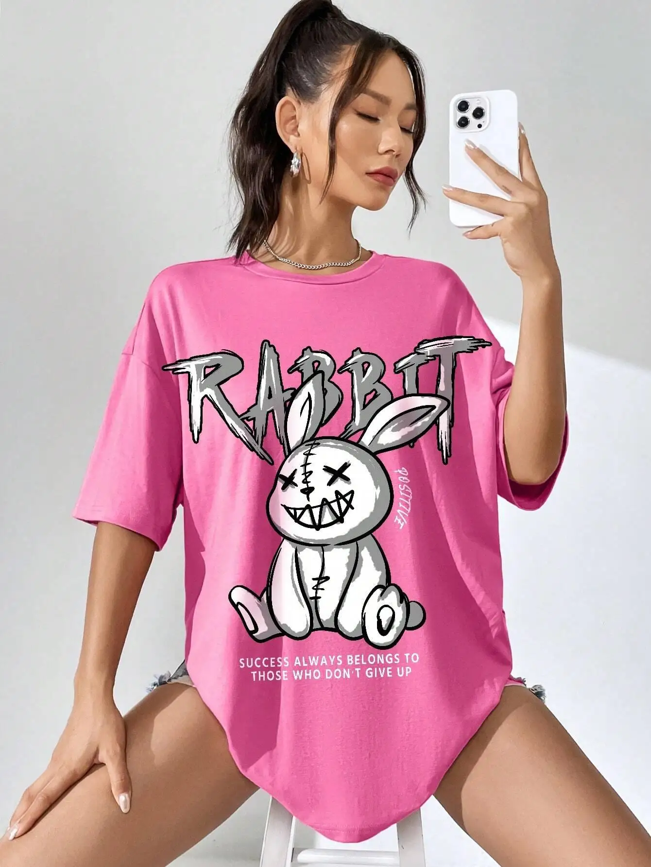 Home Uncategorized Kawaii Rabbit Printed Tops Cotton T-Shirts For Womens Fashion Casual Soft Short Sleeve Loose Tees Comfortable Street Clothes