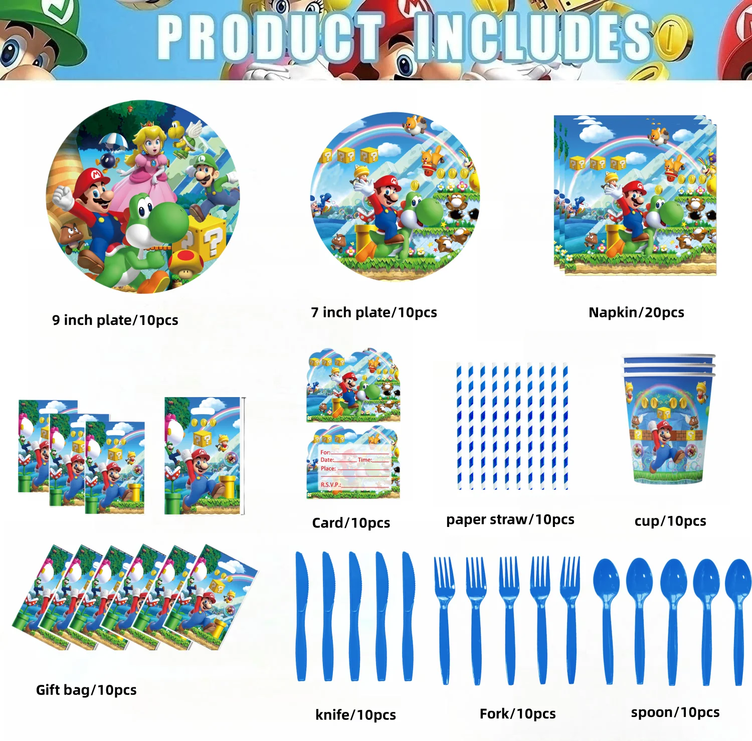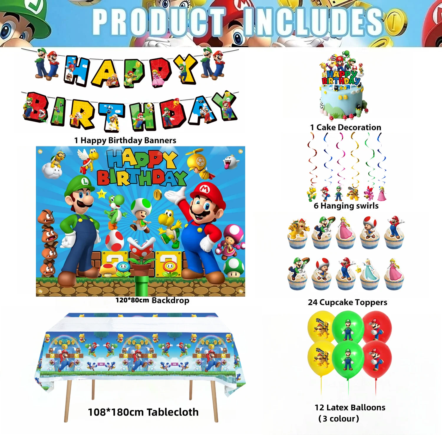 Super Brother Birthday Decoration  Cups Plates Napkin Banner Kids Mariod Bros Balloons Cupcake Baby Shower Party Supplies Decors