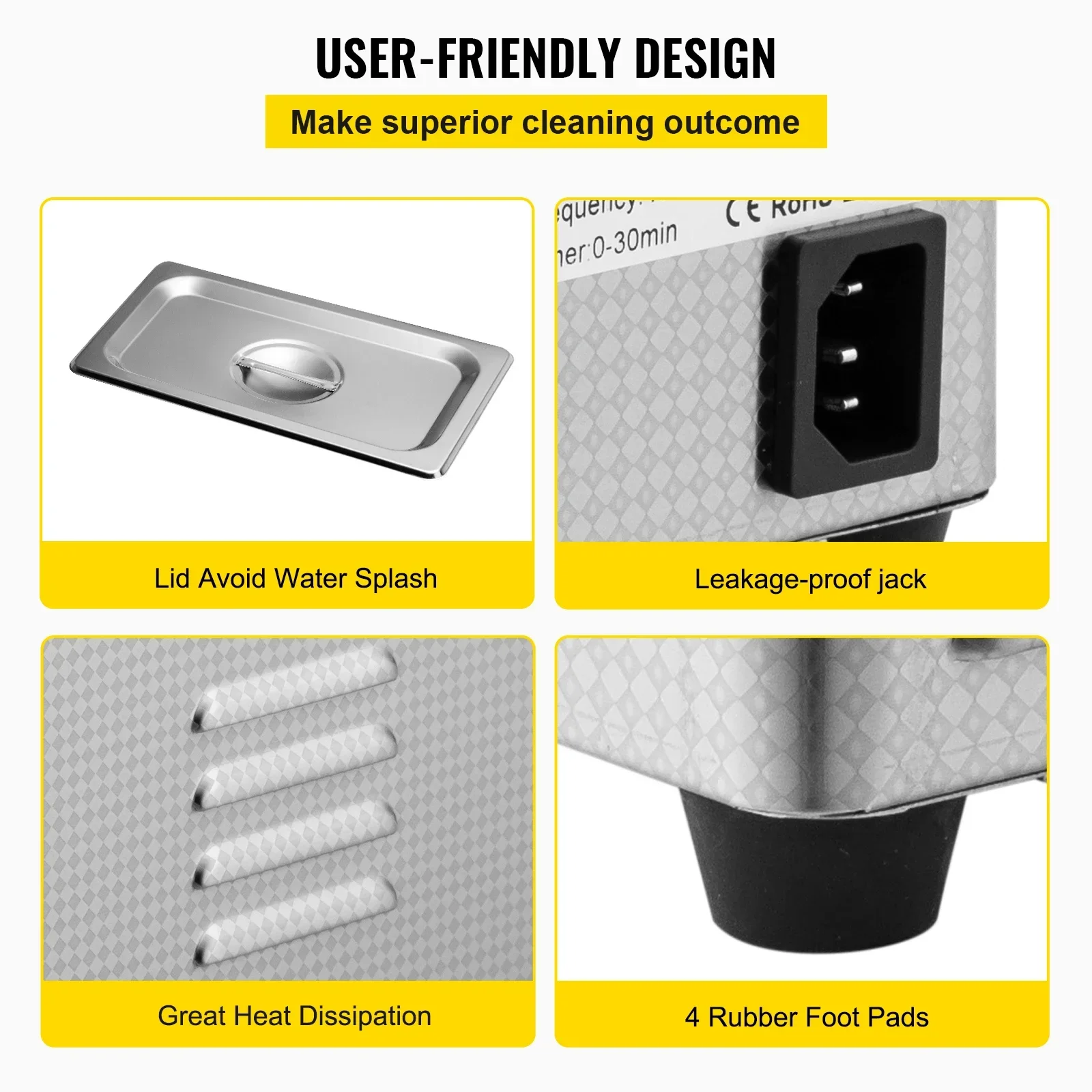 User-friendly Design: Tabletop ultrasonic washer, lightweight and simple to hold/transfer. It is designed for higher buyer use: washing basket, protected socket, warmth dissipation, anti-slide rubber ft, and high lid with deal with.